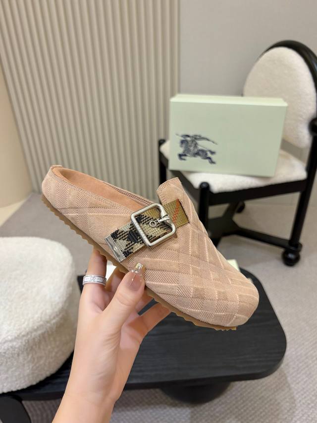 / 压纹男款 ,女款330元! Burberry2025 爆款勃肯拖鞋出炉,选用柔软反绒面革面料打造,于意大利工坊精制而成。融入格纹图案压花,搭配压纹鞋底,其上点缀