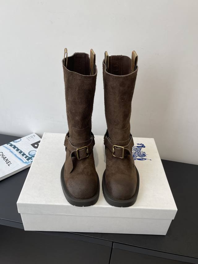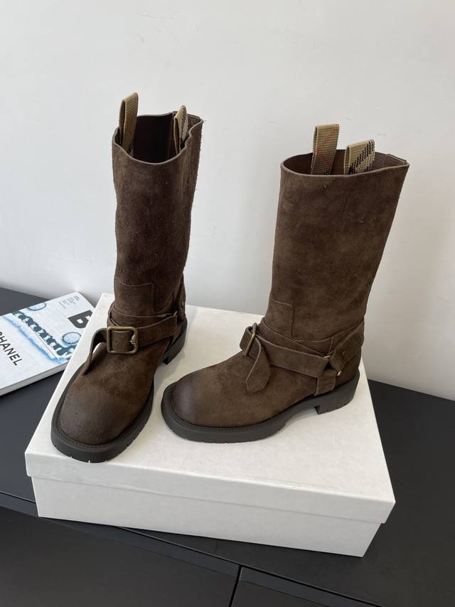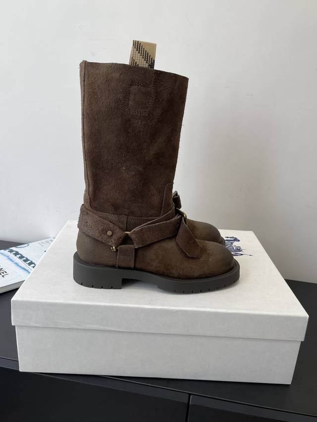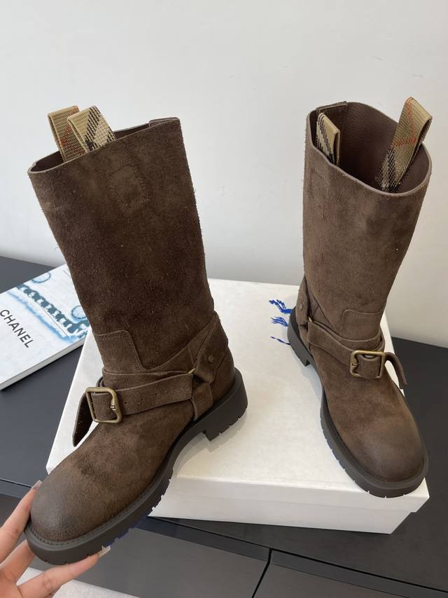 顶级版本 Burberry~巴宝莉 25Ss秋冬全新 中筒靴 DDD Bbr 出自设计师Daniel Lee 秋冬全新设计新款靴子 易梦玲同款超多网红明星上脚 今年秋冬限定款 专柜非常难买 看着很硬的样子 其实非常软巨好穿 脚感超赞 靴筒宽大 不管腿粗腿细 都能穿出宽松感而且非常显腿直 朋克风十足 Zp开模蓝骑士鞋 DDD 鞋面定制进口真小牛皮 DDD 内里订制绵羊皮 DDD 鞋底原版开模大底 DDD 跟高3.5Cm DDD 码数:35-39 40定做不退换 DDD