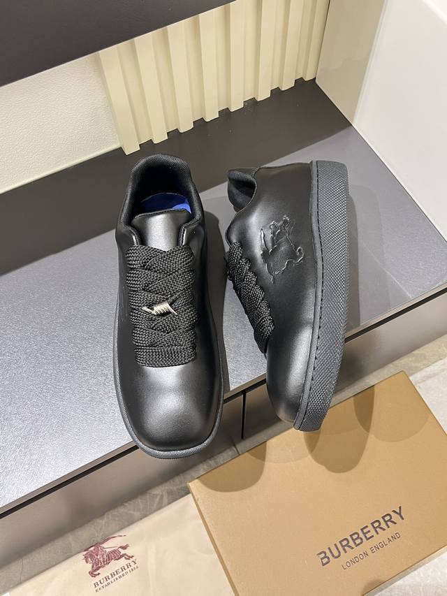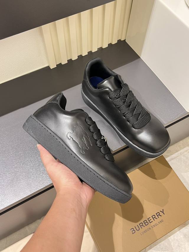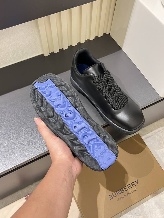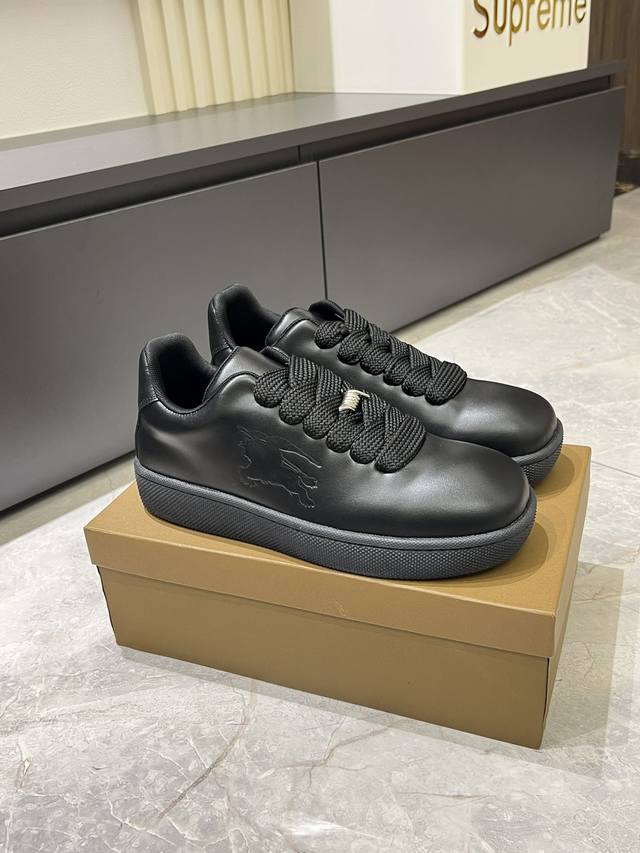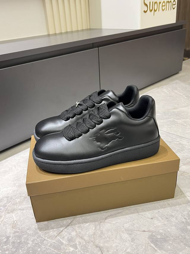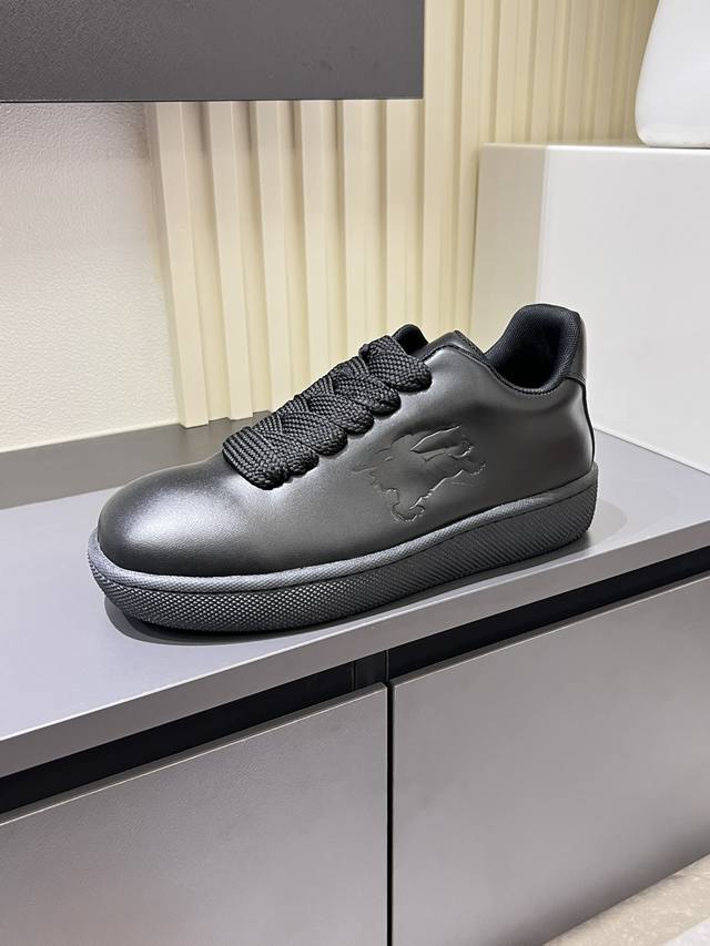 Burberr* 新品厚底男士休闲运动鞋,潮酷球鞋面包鞋,原版购入开发,顶级版本Box系列运动鞋,选用光滑小牛皮面料打造,点缀马术骑士徽标 Ekd 压花。采用网