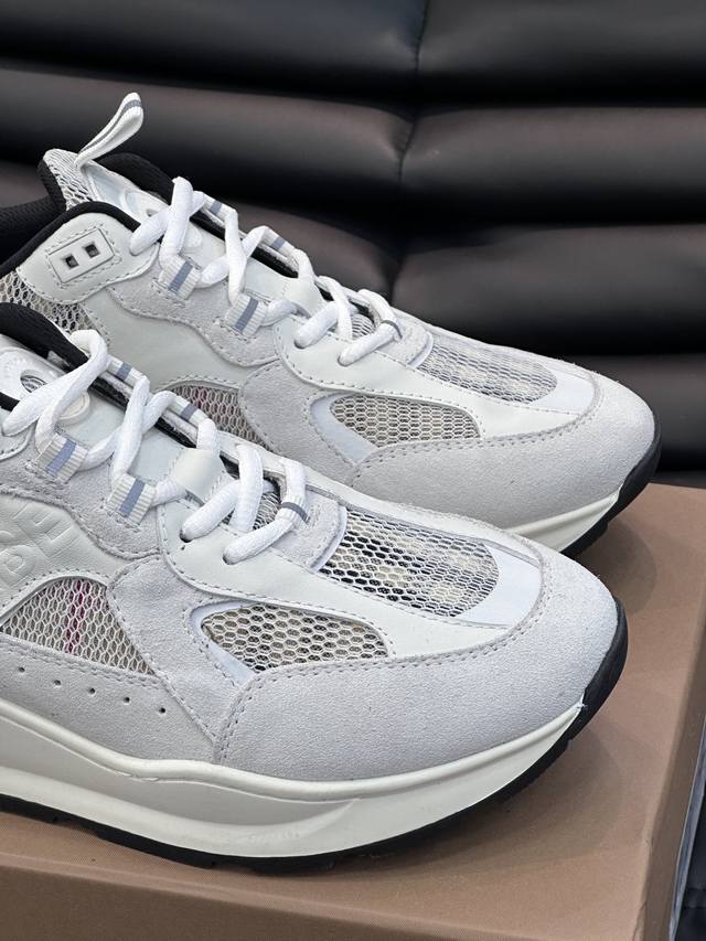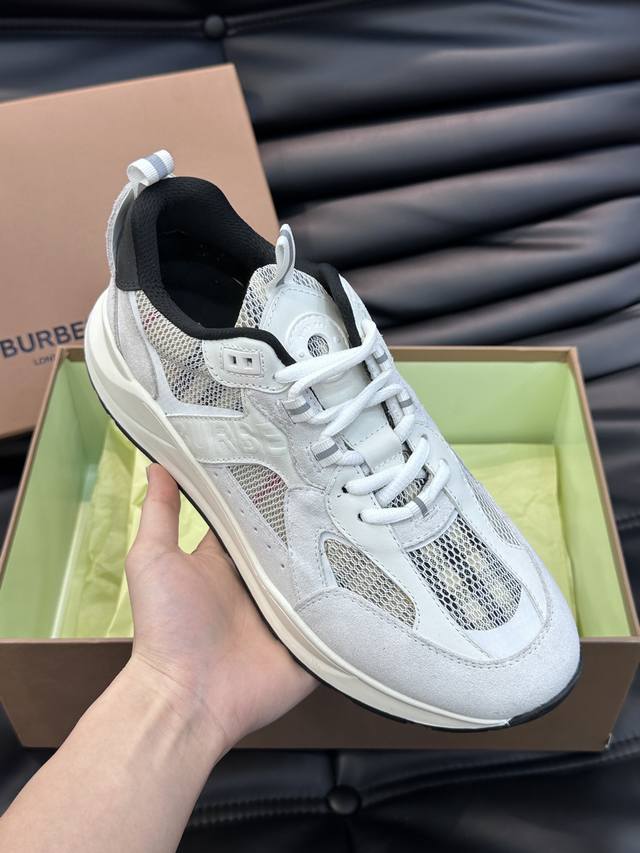/ Burberr* 男士增高运动鞋!高端品质,鞋面选用头层牛皮拼接原版帆布,整体低调又不失时尚,时装秀灵感运动鞋,装饰品牌典藏 Vintage 复古格纹,搭配厚底