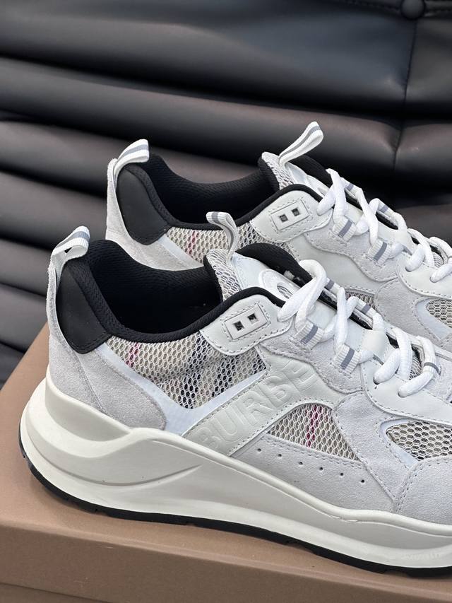 Burberr* 男士增高运动鞋!高端品质,鞋面选用头层牛皮拼接原版帆布,整体低调又不失时尚,时装秀灵感运动鞋,装饰品牌典藏 Vintage 复古格纹,搭配厚底