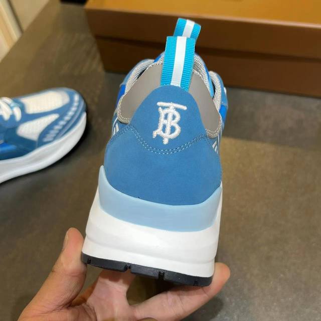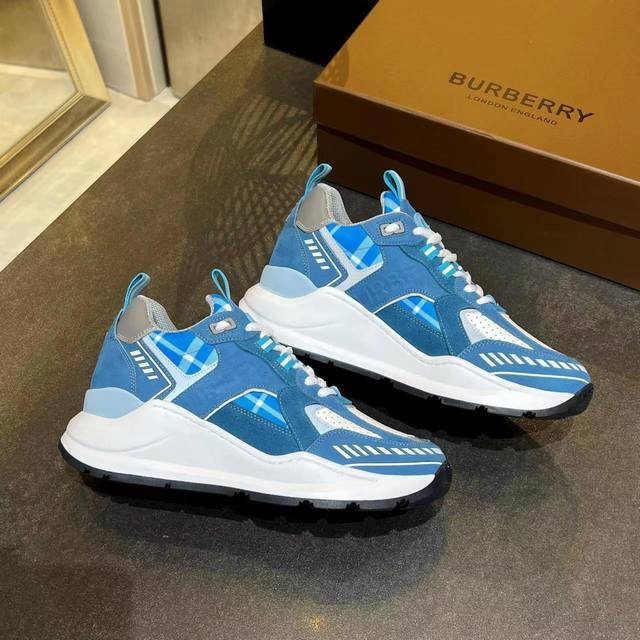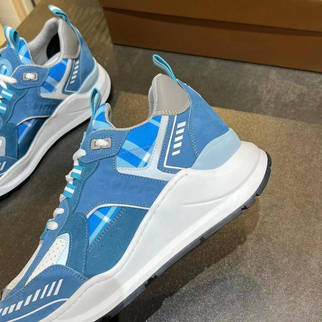 专柜最新高端版本,专柜一比一,巴宝莉23秋冬最新厚底运动鞋,采用复古格子、麂皮和皮革制成,搭配突出的弧形鞋底,鞋面:48%棉,52%小牛皮,衬里:60%聚酯纤维