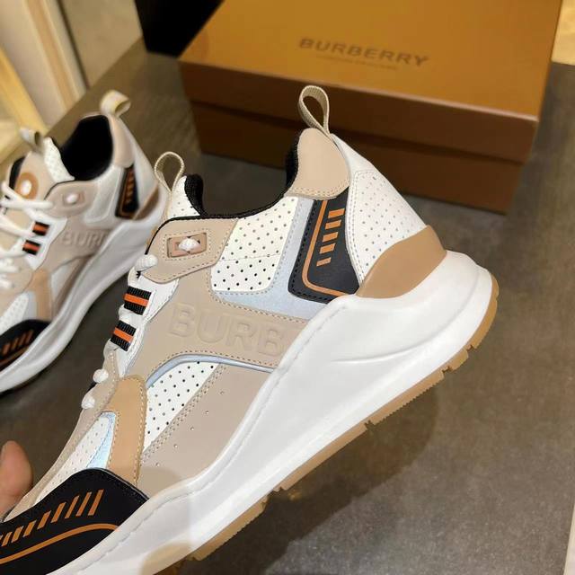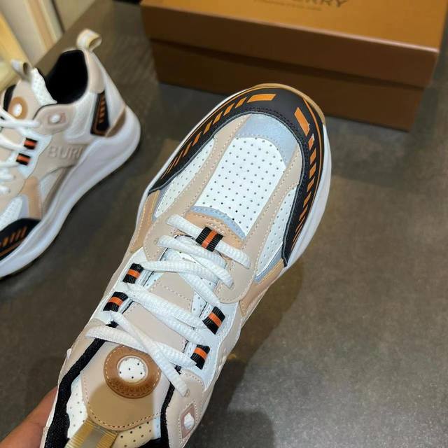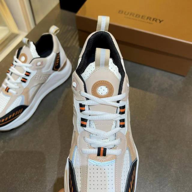 / 专柜最新高端版本,专柜一比一,巴宝莉23秋冬最新厚底运动鞋,采用复古格子、麂皮和皮革制成,搭配突出的弧形鞋底,鞋面:48%棉,52%小牛皮,衬里:60%聚酯纤维