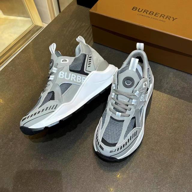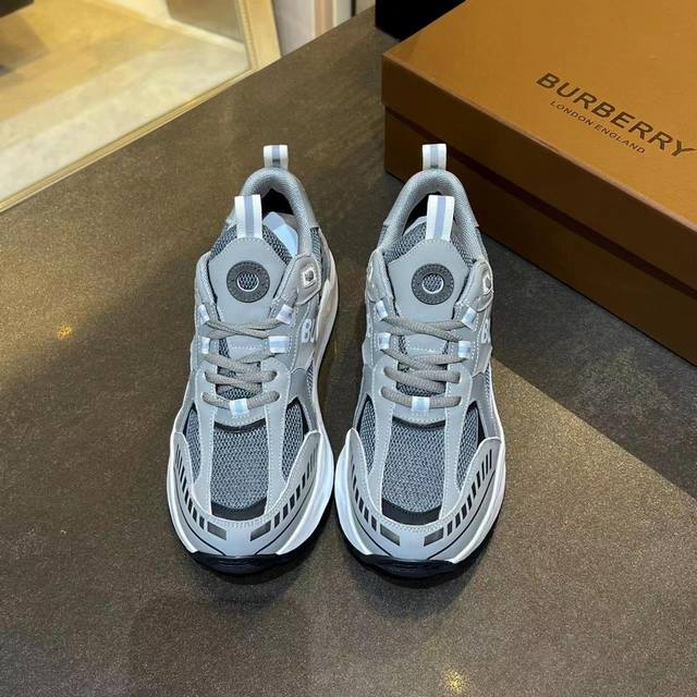 / 专柜最新高端版本,专柜一比一,巴宝莉23秋冬最新厚底运动鞋,采用复古格子、麂皮和皮革制成,搭配突出的弧形鞋底,鞋面:48%棉,52%小牛皮,衬里:60%聚酯纤维