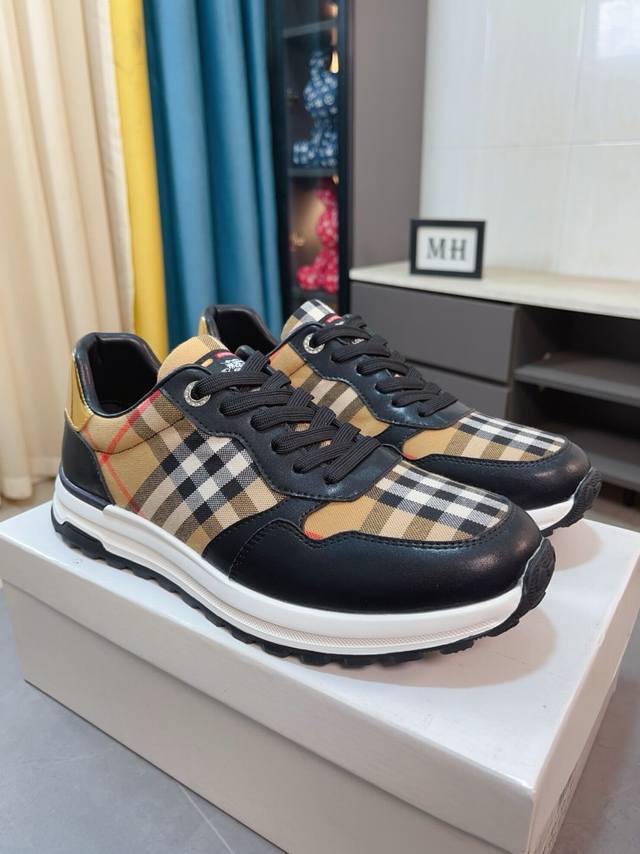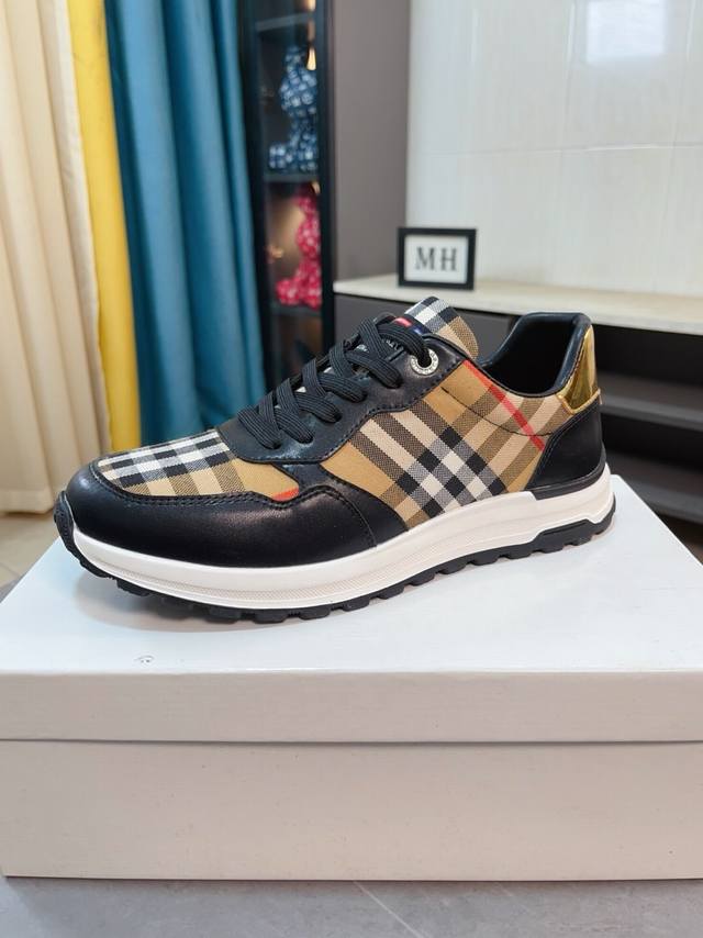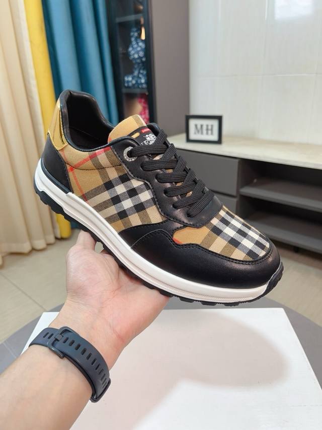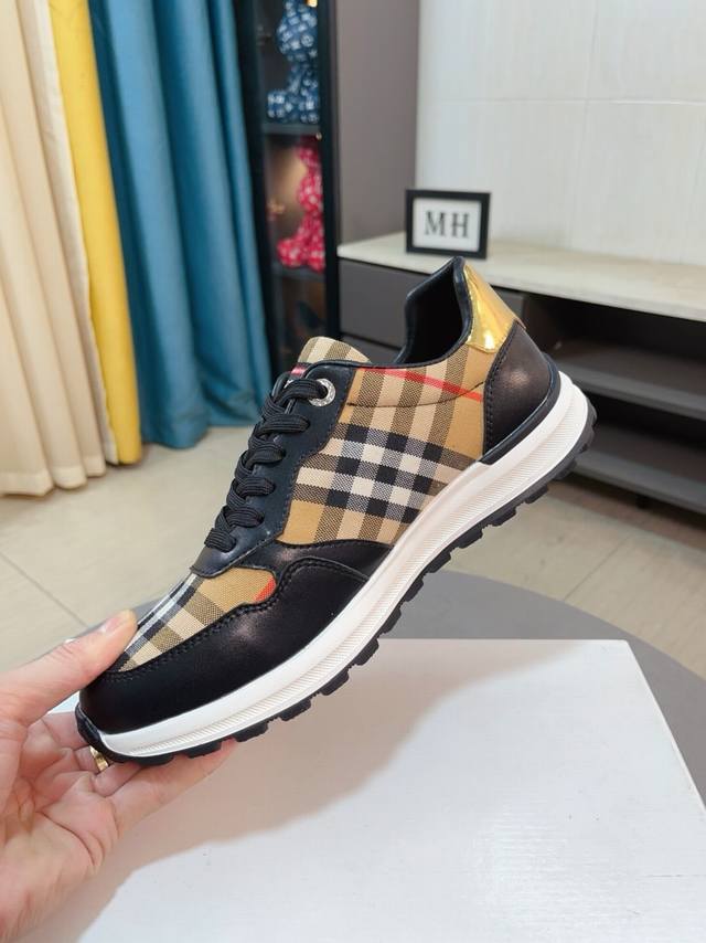 出厂价 Burberry巴宝莉 经典低帮运动鞋|进口牛皮搭配经典格纹布料|羊皮内里|原版大底|做工精细穿着舒适 Size:38-44 45定做