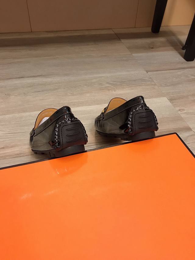 出厂价P 巴宝莉 豆豆鞋新款爆款!沉稳内涵儒雅的品味无法言喻的开启时尚鞋履的旅程从容应对各种场合!大牌的气势不言而明!上脚舒适大气!鞋面进口漆皮,吸汗羊皮内里,