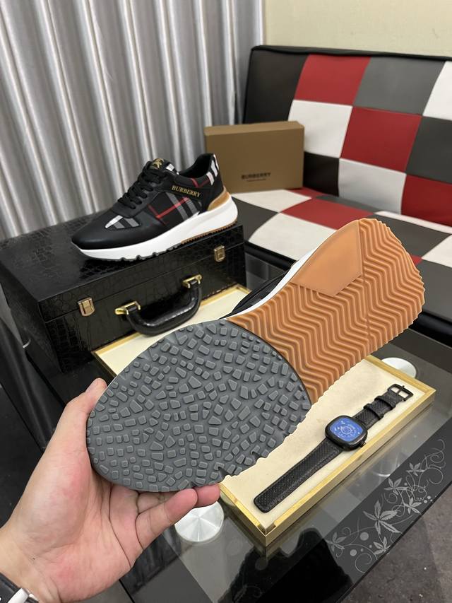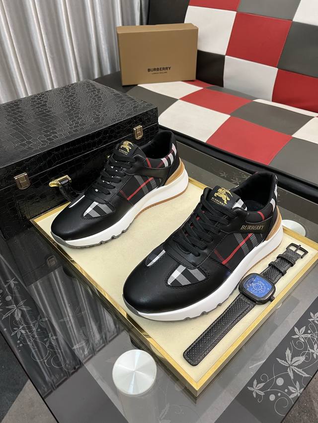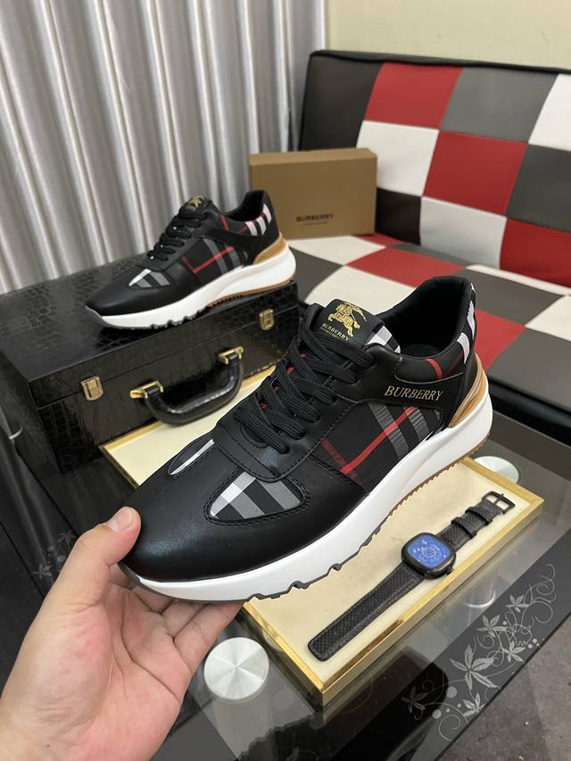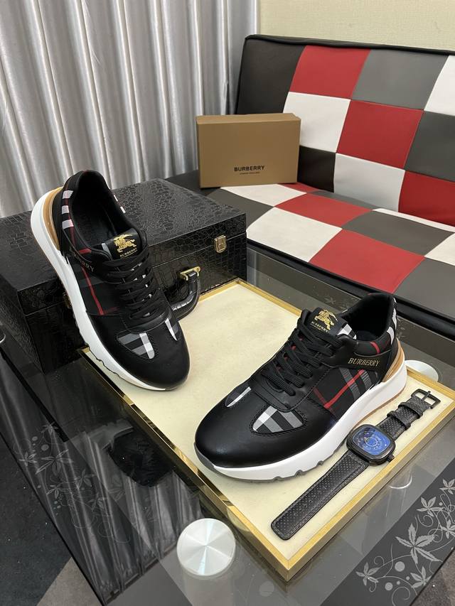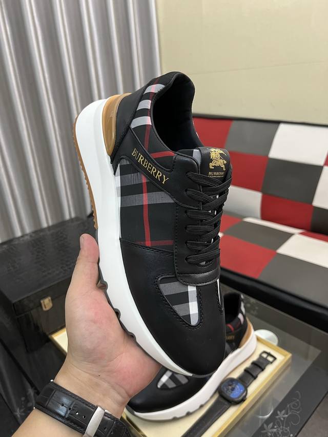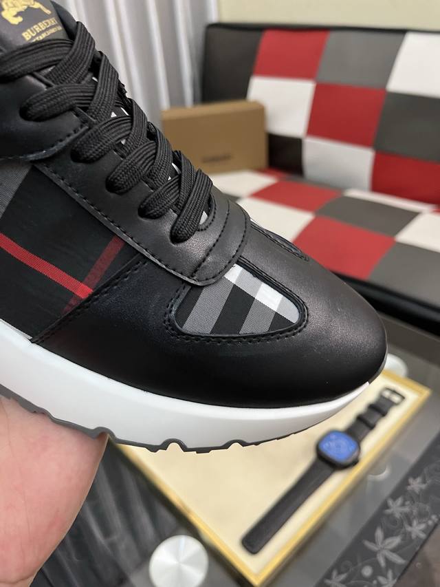 Burberry 巴宝莉 批 。时尚运动休闲鞋,鞋面采用头牛皮搭配格子料,头层猪皮内里,橡胶大底。男款38-44。