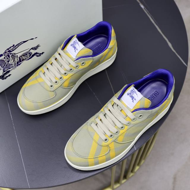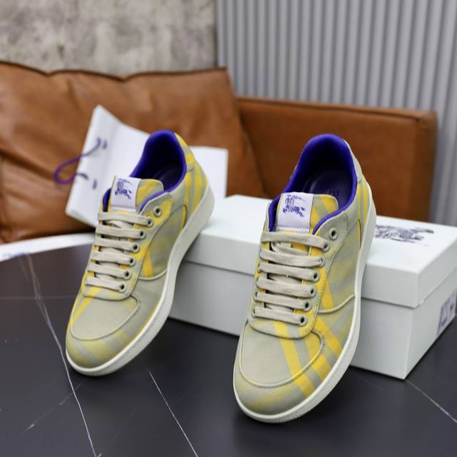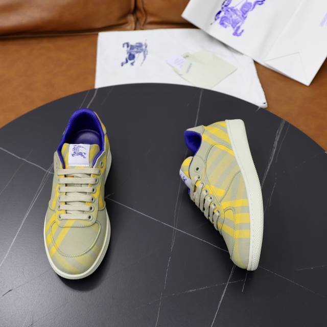 / 出厂价Pp: 顶级原单情侣款B家巴宝莉2025Ss男士经典低帮格纹帆布运动鞋,以 Vintage 复古格纹棉材质焕新演绎,装饰焕新的品牌徽标。头层牛皮垫脚,鞋跟