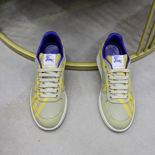 出厂价Pp: 顶级原单情侣款B家巴宝莉2025Ss男士经典低帮格纹帆布运动鞋,以 Vintage 复古格纹棉材质焕新演绎,装饰焕新的品牌徽标。头层牛皮垫脚,鞋跟