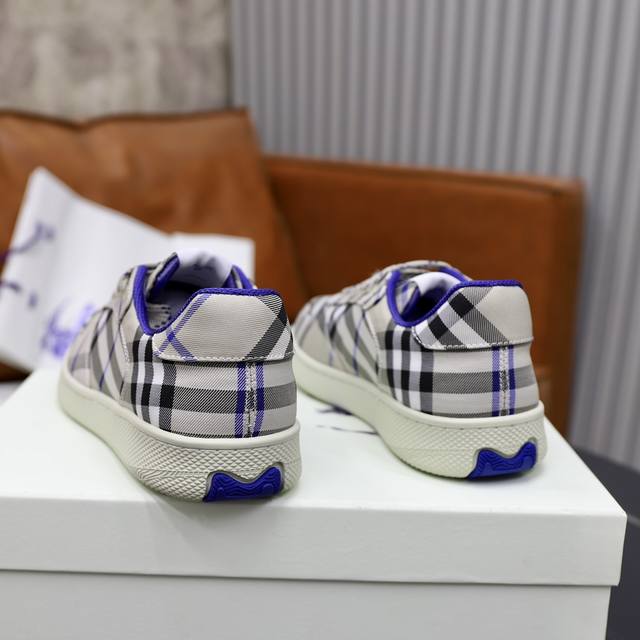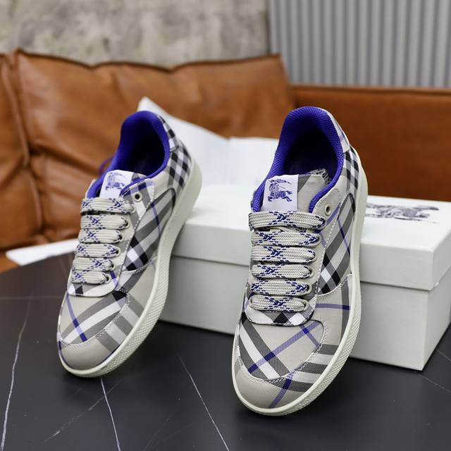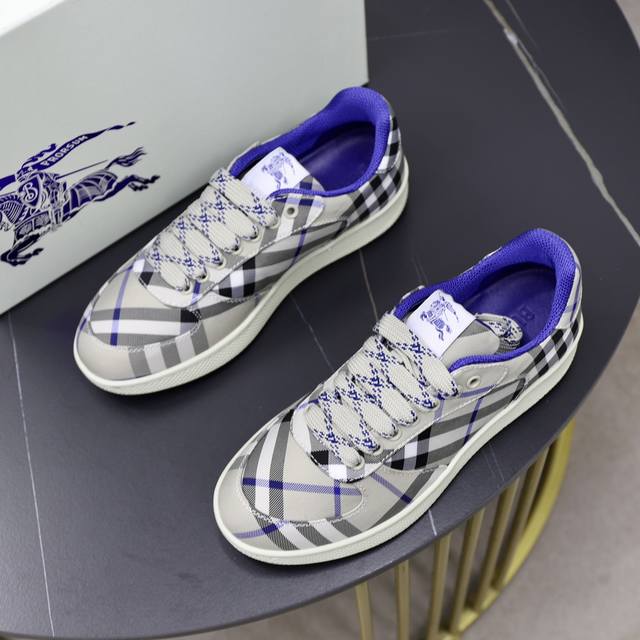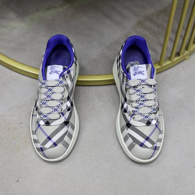 出厂价pp: 顶级原单情侣款B家巴宝莉2025Ss男士经典低帮格纹帆布运动鞋,以 Vintage 复古格纹棉材质焕新演绎,装饰焕新的品牌徽标。头层牛皮垫脚,鞋跟