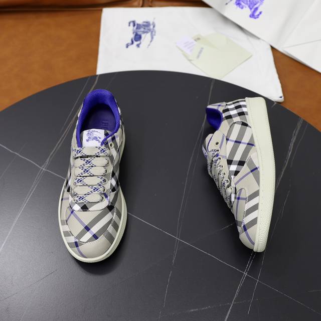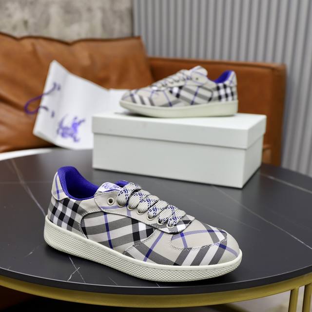 / 出厂价pp: 顶级原单情侣款B家巴宝莉2025Ss男士经典低帮格纹帆布运动鞋,以 Vintage 复古格纹棉材质焕新演绎,装饰焕新的品牌徽标。头层牛皮垫脚,鞋跟