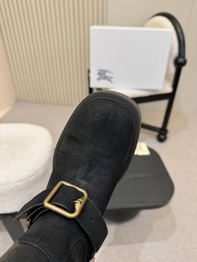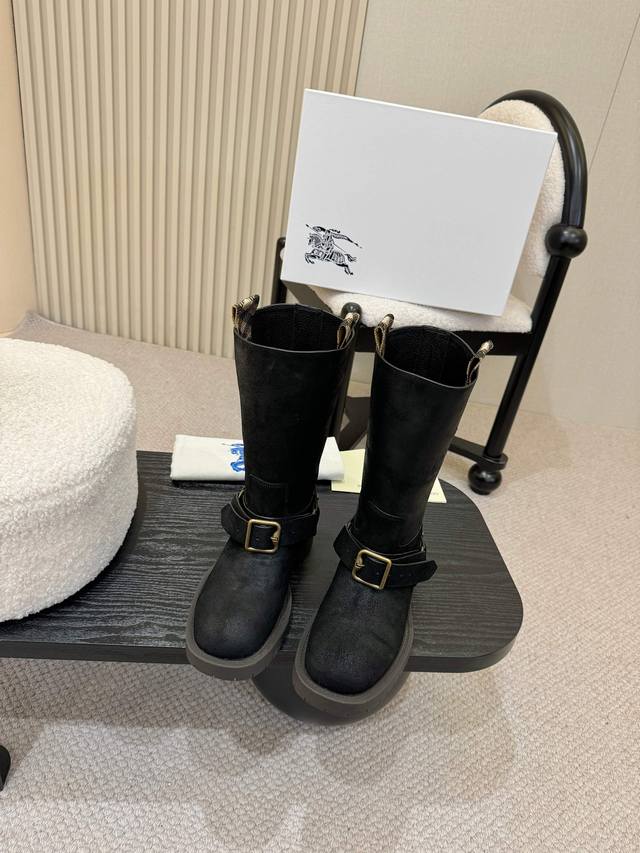 / 实价: Burberr2025爆款马术骑士靴出炉,选用小牛皮反绒面革材质.打造复古骑士战靴,于意大利工坊精制而成。融入 B 字型扣环束带和提鞋饰袢,装饰标志性沙