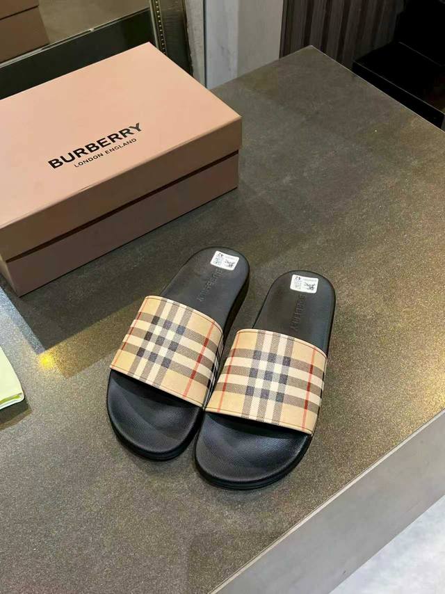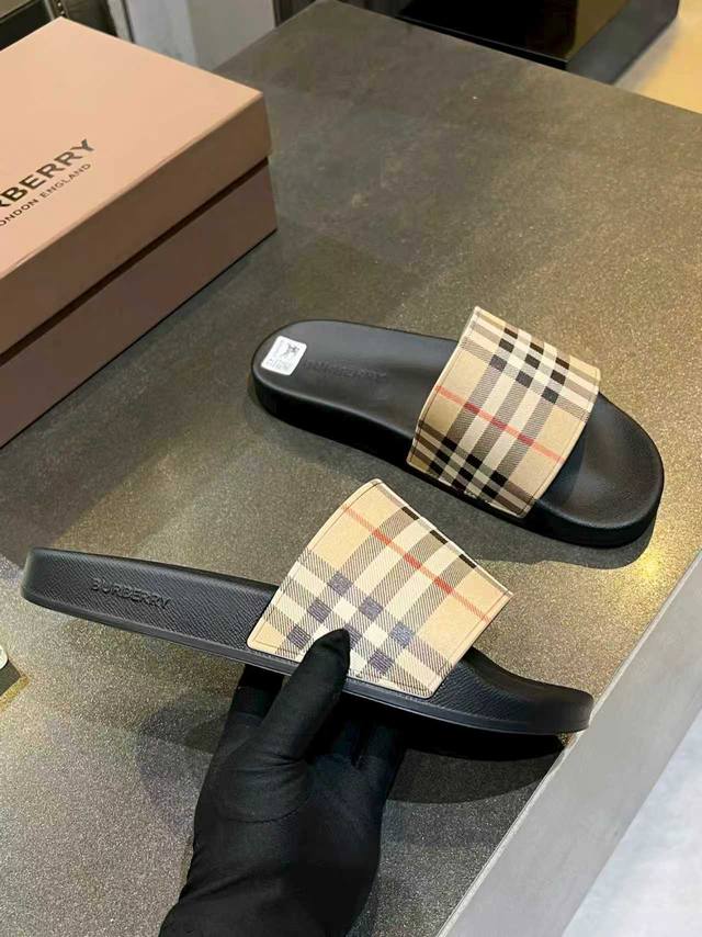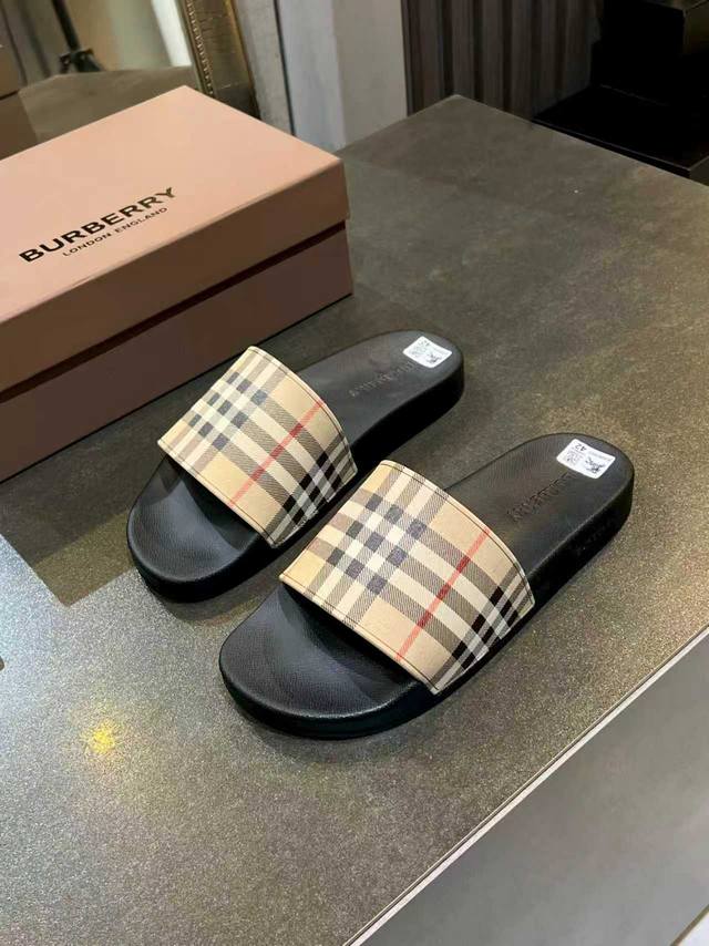 出厂价p Burberry巴宝莉 经典拖鞋|进口材料搭配经典格纹料|原版大底|做工精细穿着舒适 Size:38-44 45定做