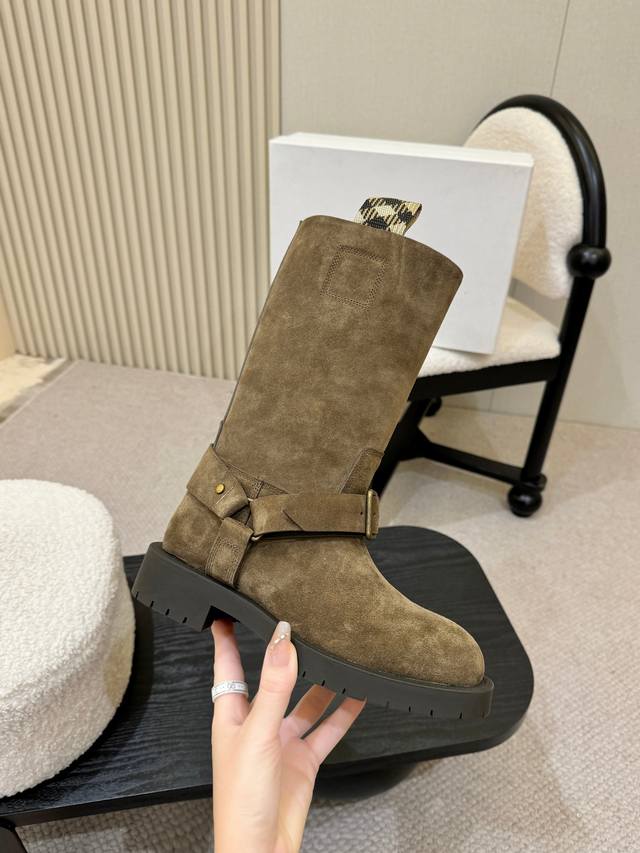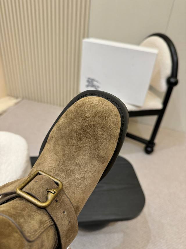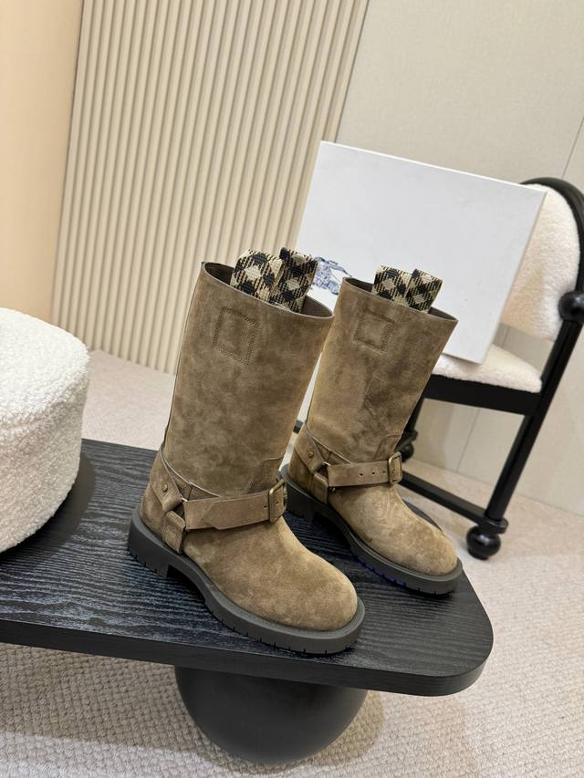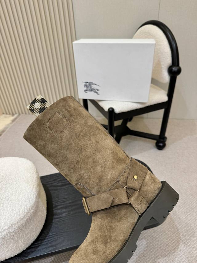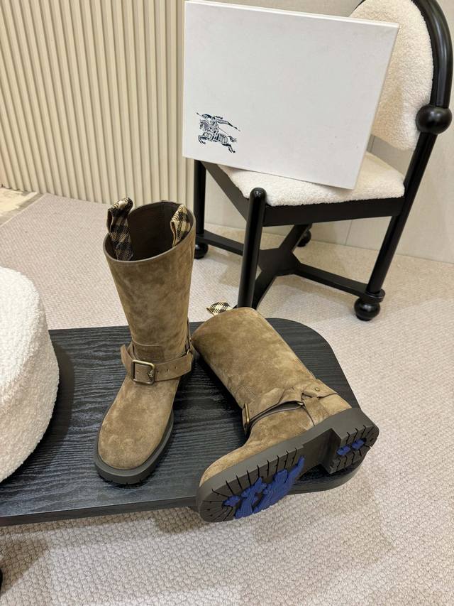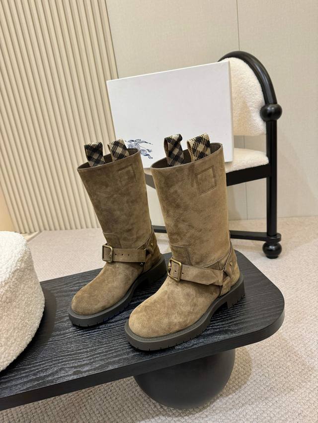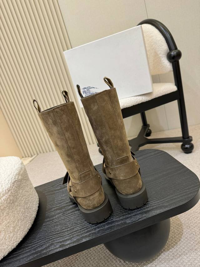 / 工厂p价 女装女鞋 运动原单 Burberr2025爆款马术骑士靴出炉,选用小牛皮反绒面革材质.打造复古骑士战靴,于意大利工坊精制而成。融入 B 字型扣环束带和