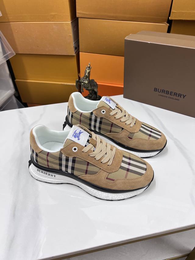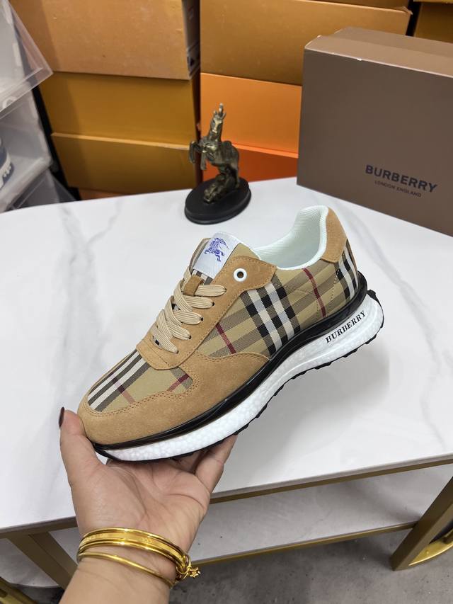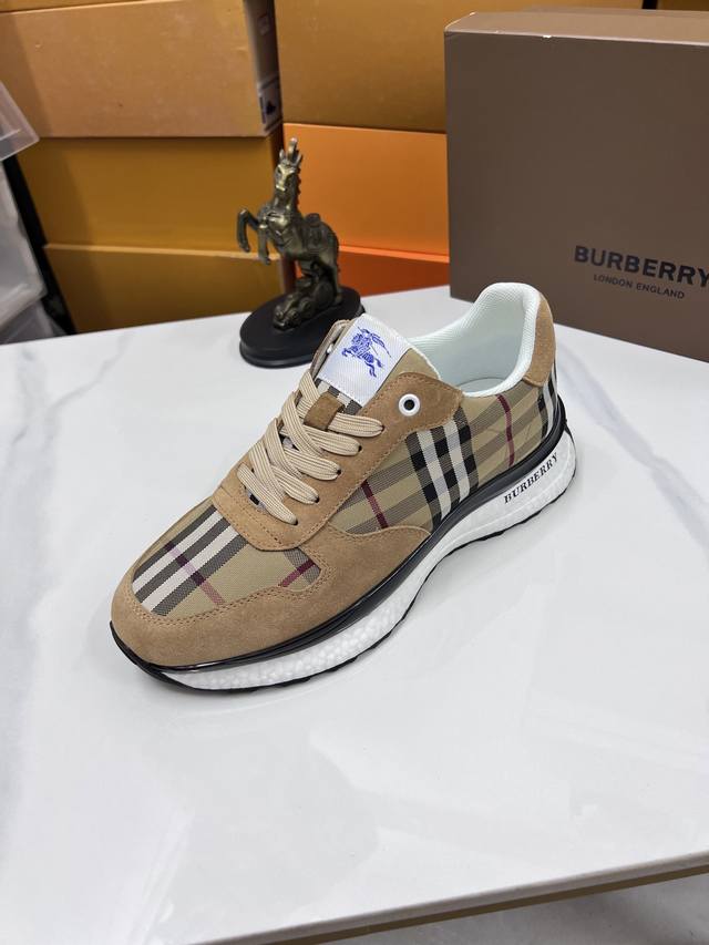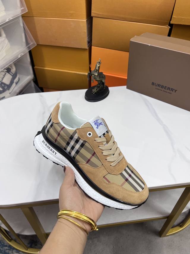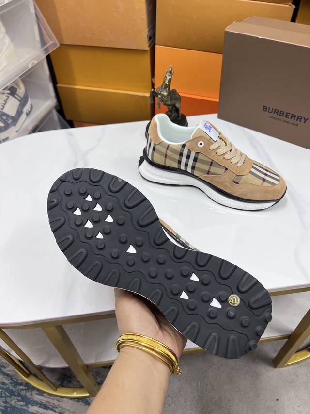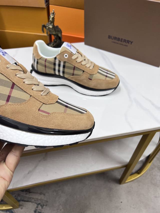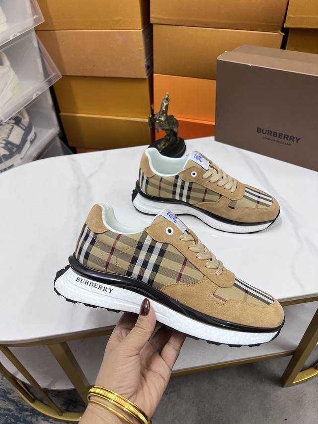 专柜最新高端版本,专柜一比一,巴宝莉23秋冬最新厚底运动鞋,采用复古格子、麂皮和皮革制成,搭配突出的弧形鞋底,鞋面:48...