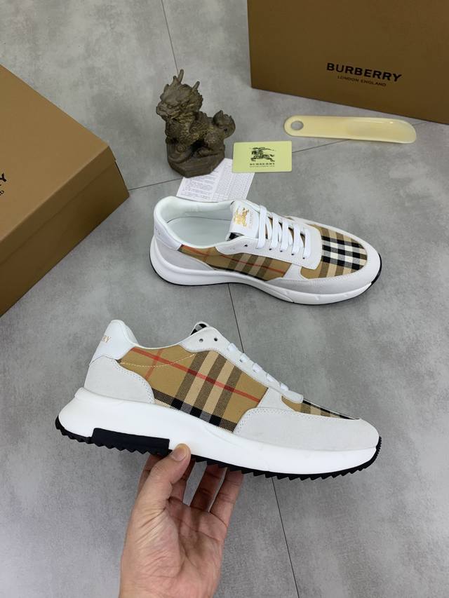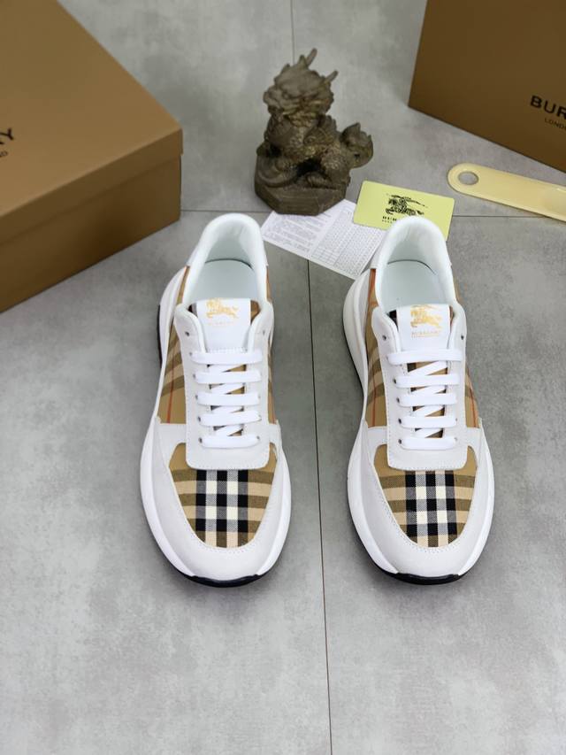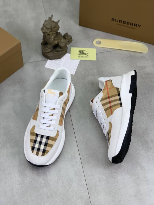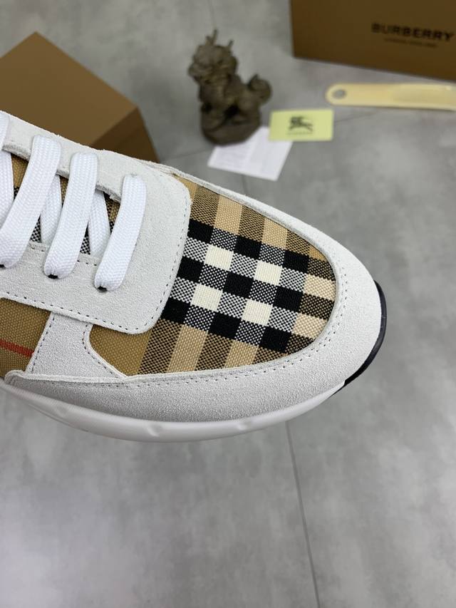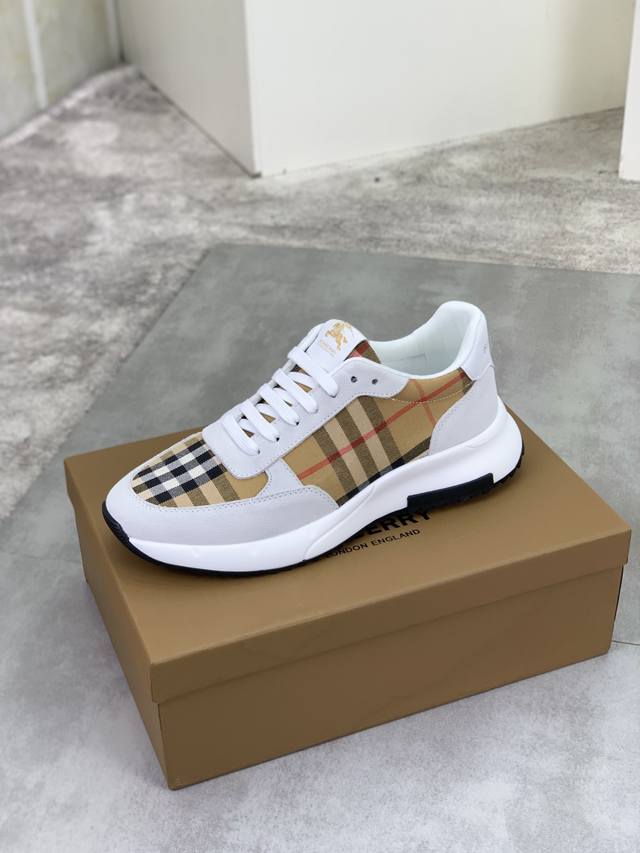 Burberry2025爆款出炉,历经三年经典格子回归,百搭,装饰精纺 Burberry 格纹图案。搭配网眼内衬和格纹鞋带,橡胶鞋底饰有典藏...