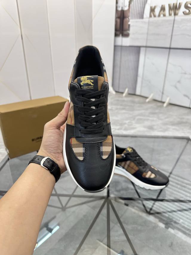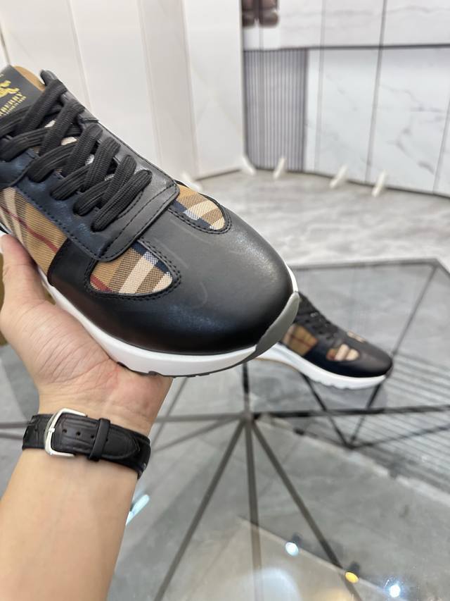调工厂p价 男装男鞋 运动原单 商品商标:Burberr* 巴宝莉* 低帮运动鞋 正码码数: 38-44 可订做45 商品材料:鞋面进口牛皮拼接原版布料,羊皮内