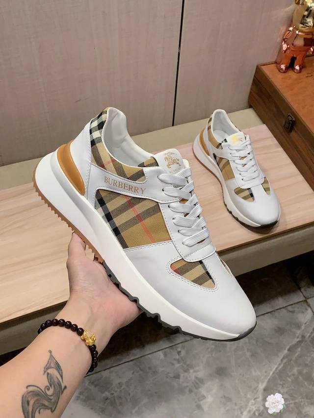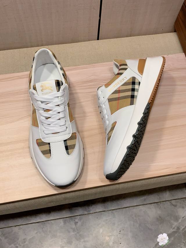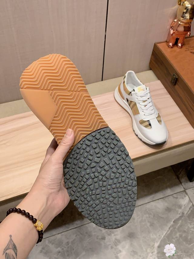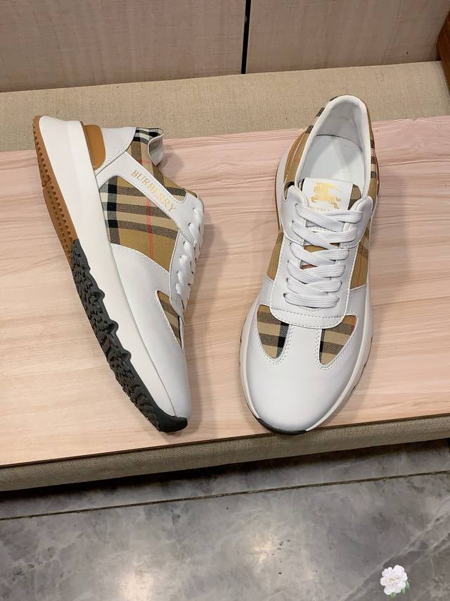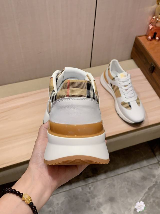 专柜最新高端版本,专柜一比一,巴宝莉23秋冬最新厚底运动鞋,采用复古格子、麂皮和皮革制成,搭配突出的弧形鞋底,鞋面:48...