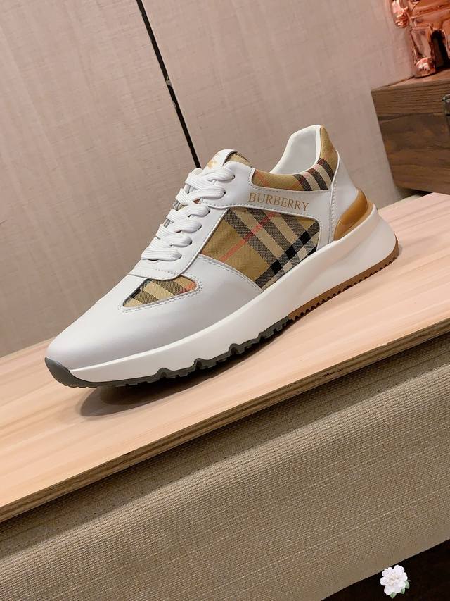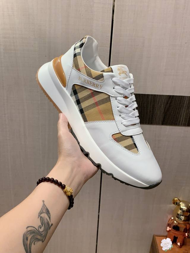调工厂P价 男装男鞋 运动原单 巴宝莉* 最新爆款休闲鞋,顶端品牌 奢侈~代购,顶级~质量。 鞋面選用进口透气牛皮搭配材质透气羊皮垫脚 精细做工。原版个性时尚柔
