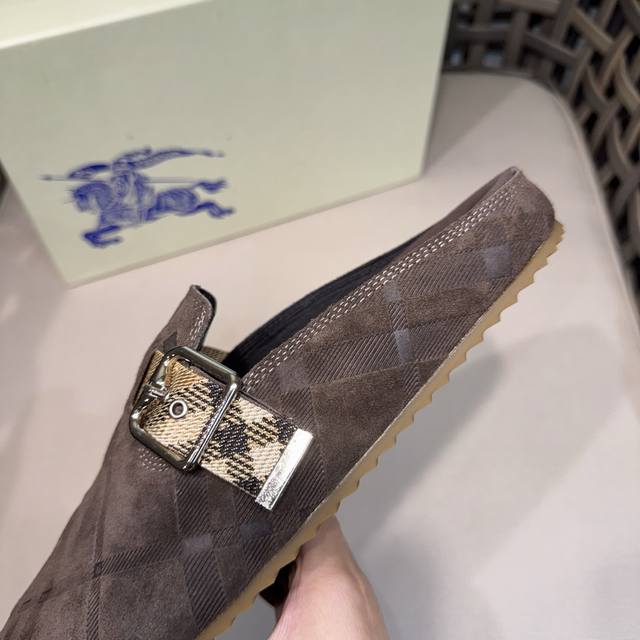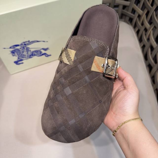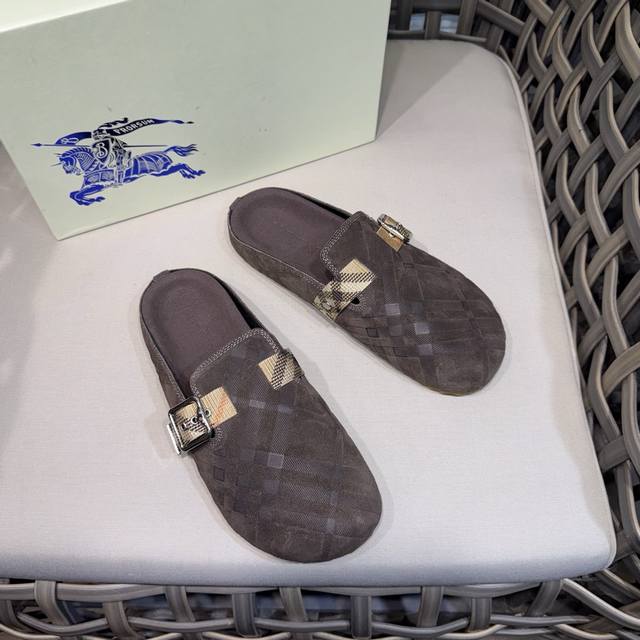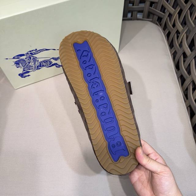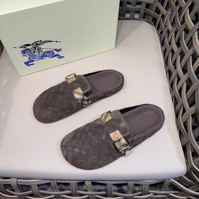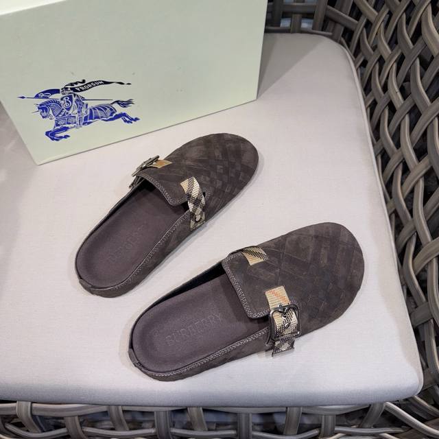 调工厂P价 男装男鞋 运动原单 Burberry男士休闲半拖鞋|此款运动鞋面采用柔软反绒皮面料|融入格纹图案压花|搭配压纹双色鞋底|其上点缀品牌标识|设有可调试B字型扣环束带|松弛感拉满满。 Size:38-44 45.46定做