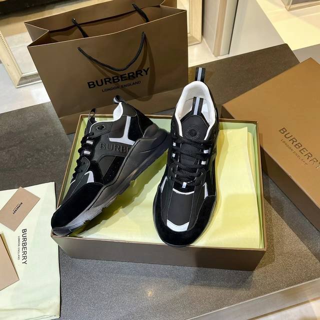 专柜最新高端版本,专柜一比一,巴宝莉23秋冬最新厚底运动鞋,采用复古格子、麂皮和皮革制成,搭配突出的弧形鞋底,鞋面:48...