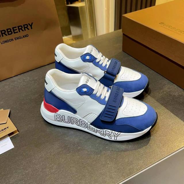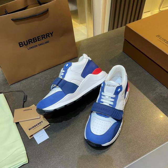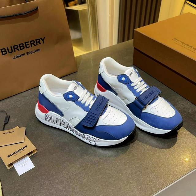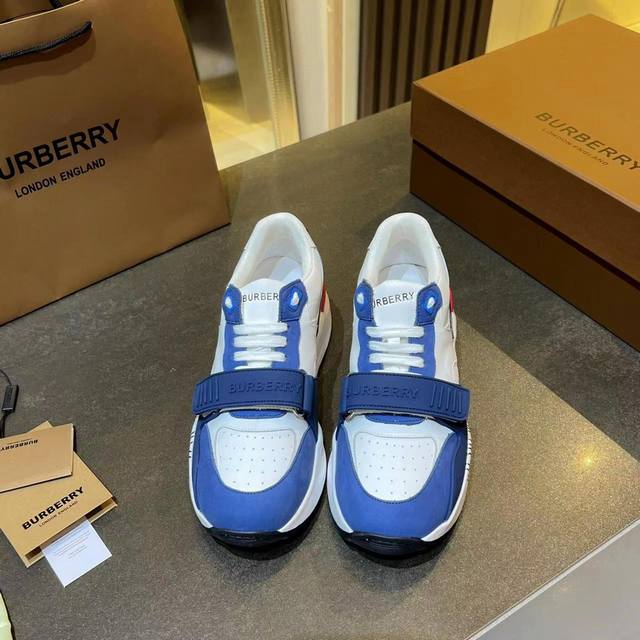 巴宝莉新款战马格纹休闲运动鞋全新露台休闲运动鞋 巴宝莉 Burberry 经典原素 超舒服的鞋子 骑士蓝色防滑鞋底...