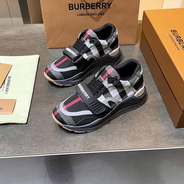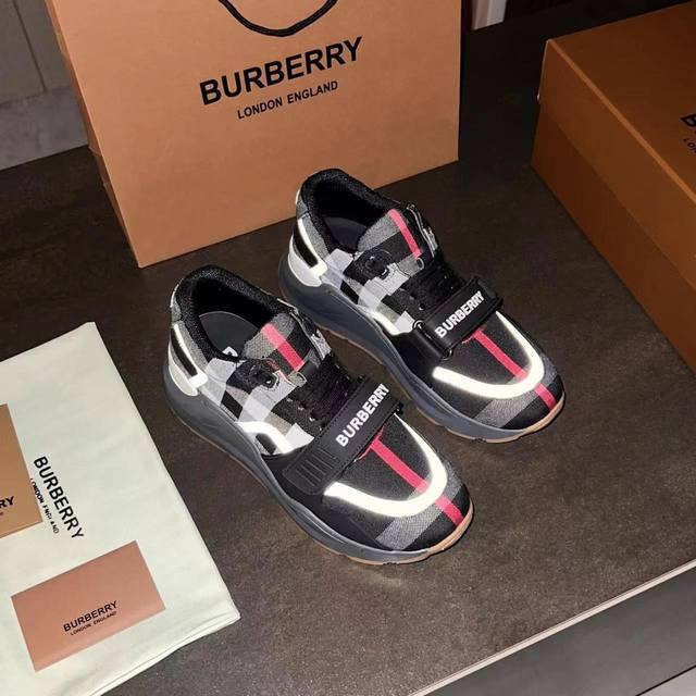 / 高版本 新款专柜新增加颜色,高端版本,专柜一比一,巴宝莉 秋冬最新厚底运动鞋,采用复古格子、麂皮和皮革制成,搭配突出的弧形鞋底,鞋面:48%棉,52%小牛皮,衬