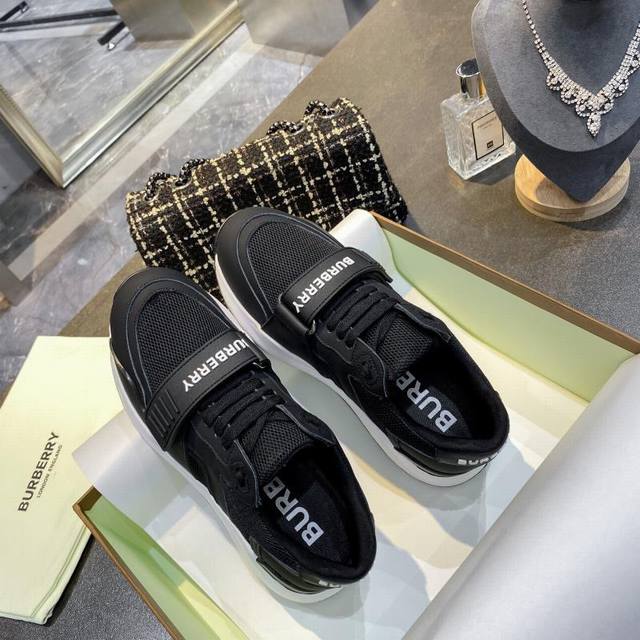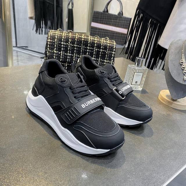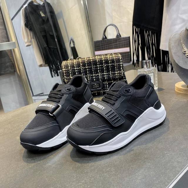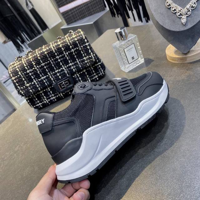 / 高版本 新款专柜新增加颜色,高端版本,专柜一比一,巴宝莉 秋冬最新厚底运动鞋,采用复古格子、麂皮和皮革制成,搭配突出的弧形鞋底,鞋面:48%棉,52%小牛皮,衬