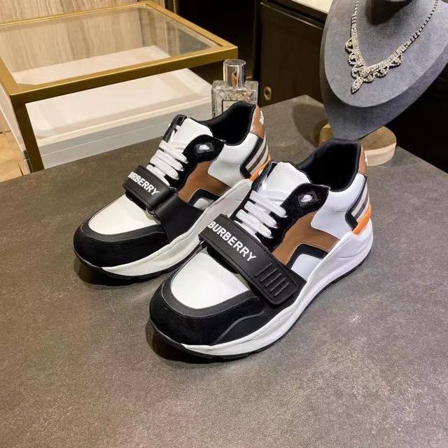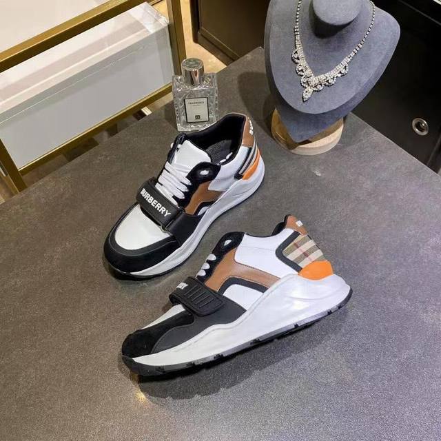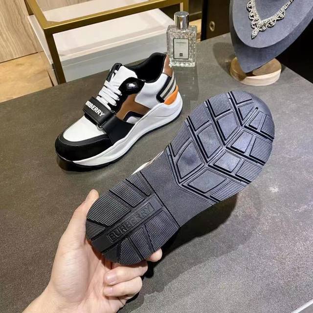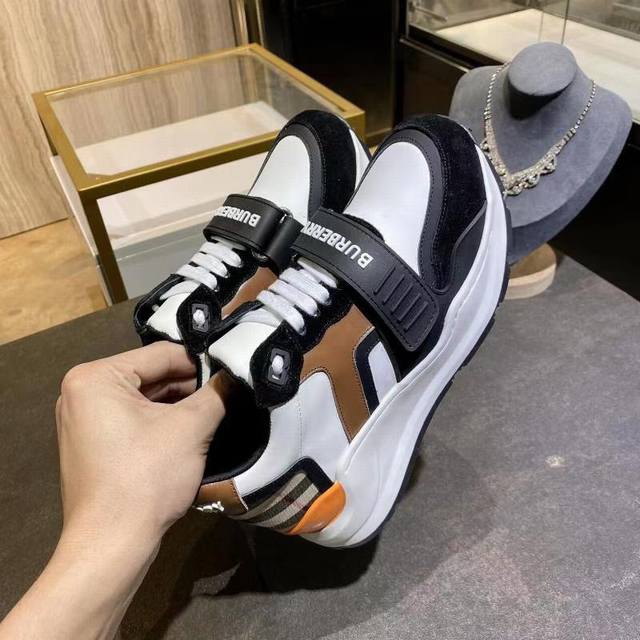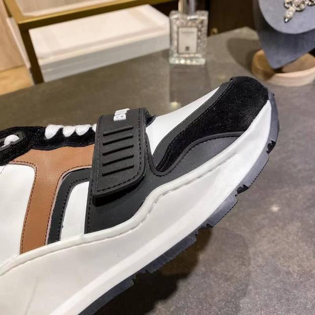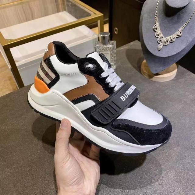 / 高版本 新款专柜新增加颜色,高端版本,专柜一比一,巴宝莉 秋冬最新厚底运动鞋,采用复古格子、麂皮和皮革制成,搭配突出的弧形鞋底,鞋面:48%棉,52%小牛皮,衬