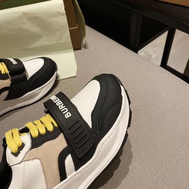 专柜最新高端版本,专柜一比一,巴宝莉23秋冬最新厚底运动鞋,采用复古格子、麂皮和皮革制成,搭配突出的弧形鞋底,鞋面:48...