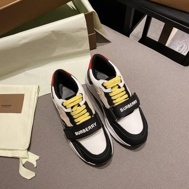 / 高版本 新款专柜新增加颜色,高端版本,专柜一比一,巴宝莉 秋冬最新厚底运动鞋,采用复古格子、麂皮和皮革制成,搭配突出的弧形鞋底,鞋面:48%棉,52%小牛皮,衬