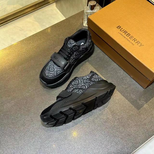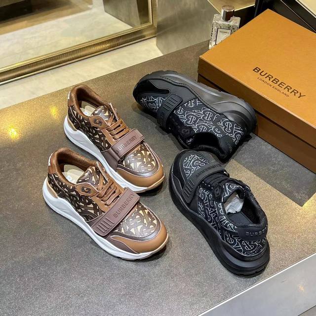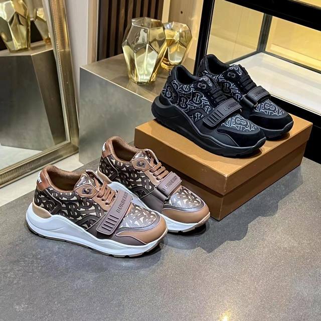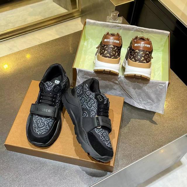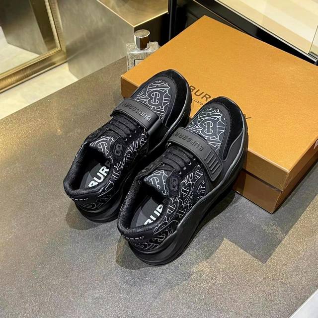 专柜最新高端版本,专柜一比一,巴宝莉23秋冬最新厚底运动鞋,采用复古格子、麂皮和皮革制成,搭配突出的弧形鞋底,鞋面:48...