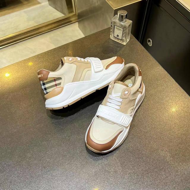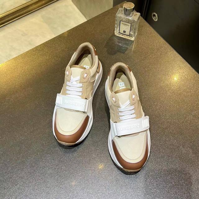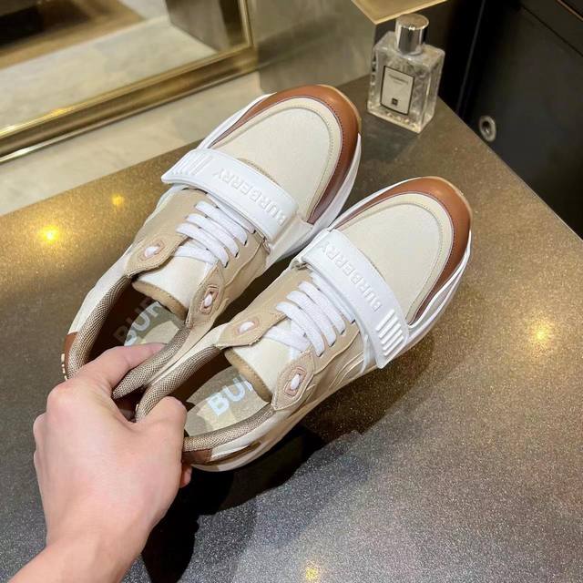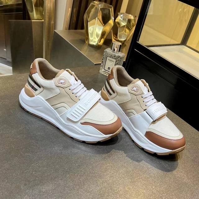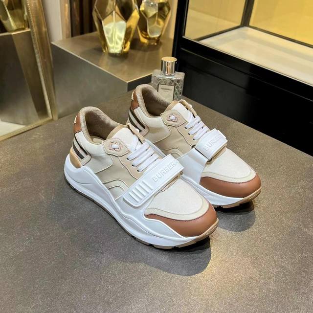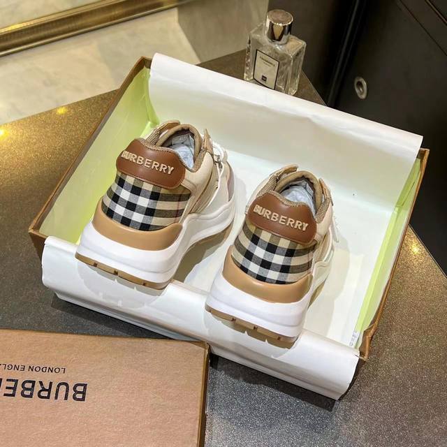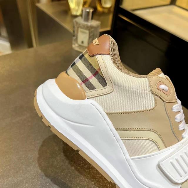 / 高版本 新款专柜新增加颜色,高端版本,专柜一比一,巴宝莉 秋冬最新厚底运动鞋,采用复古格子、麂皮和皮革制成,搭配突出的弧形鞋底,鞋面:48%棉,52%小牛皮,衬
