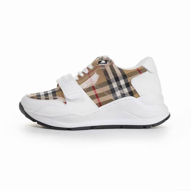 高版本 新款专柜新增加颜色,高端版本,专柜一比一,巴宝莉 秋冬最新厚底运动鞋,采用复古格子、麂皮和皮革制成,搭配突出的弧形鞋底,鞋面:48%棉,52%小牛皮,衬