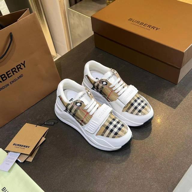 / 高版本 新款专柜新增加颜色,高端版本,专柜一比一,巴宝莉 秋冬最新厚底运动鞋,采用复古格子、麂皮和皮革制成,搭配突出的弧形鞋底,鞋面:48%棉,52%小牛皮,衬