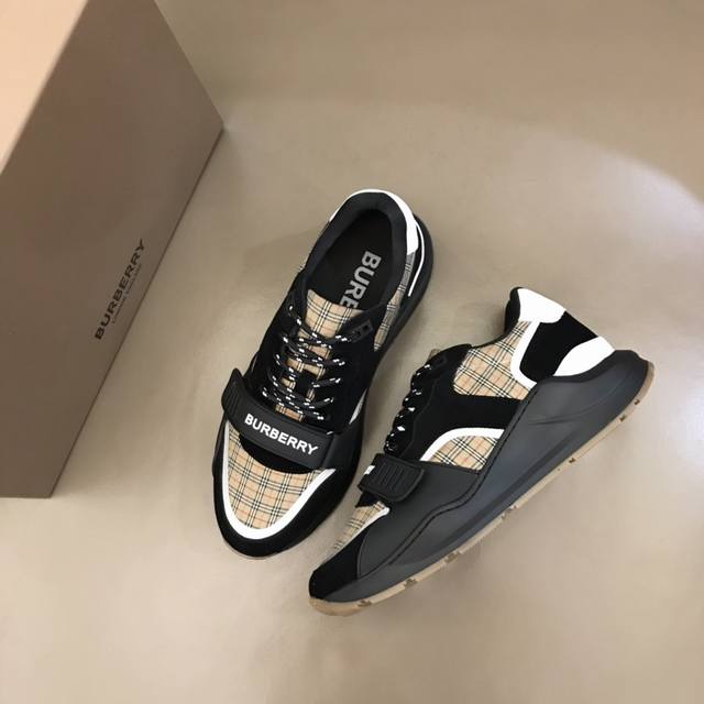 Burberr*格纹棉质运动鞋 牛皮,麂皮拼接打造。搭配House格纹英国精纺棉质斜纹裁片。小羊皮内里,橡胶大底。 Size:38-44 45定做
