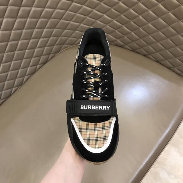 Burberry 巴宝莉 -高端品质 原单休闲运动板鞋 -鞋面:进口纳帕小牛皮、品牌图腾布匹、鞋舌品牌布标...