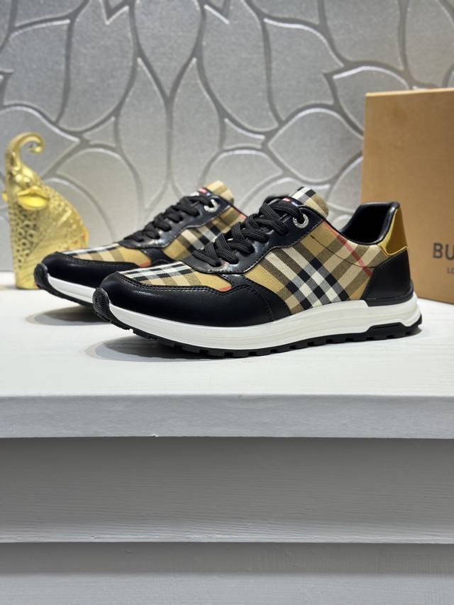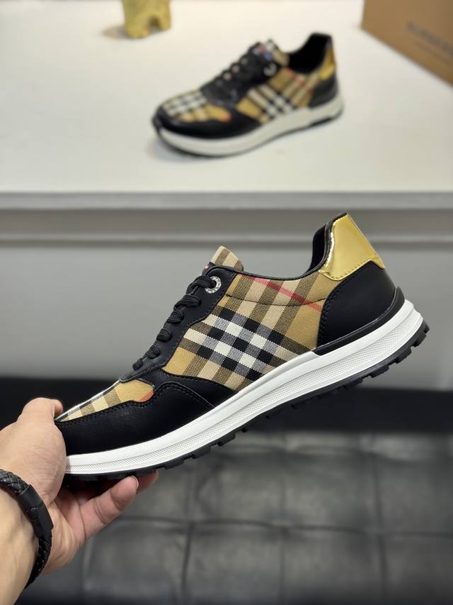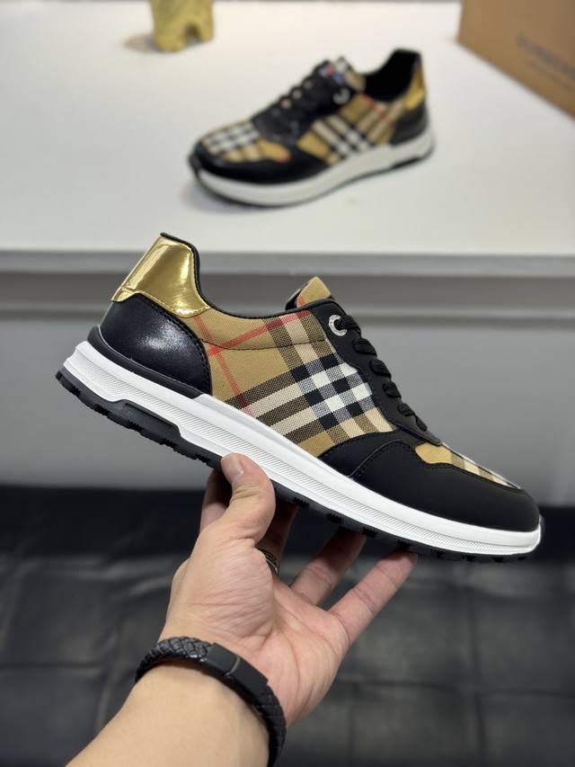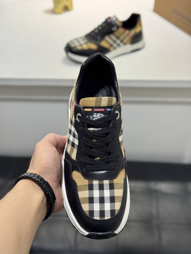 Burberry* 原单品质 新款巴宝莉家男士经典低帮运动鞋,以 Vintage 复古格纹棉搭配牛皮材质焕新演绎,装饰焕新的品牌徽标。穿着舒适透气,耐磨防滑橡胶大底! Size:38-44 45定制Rx