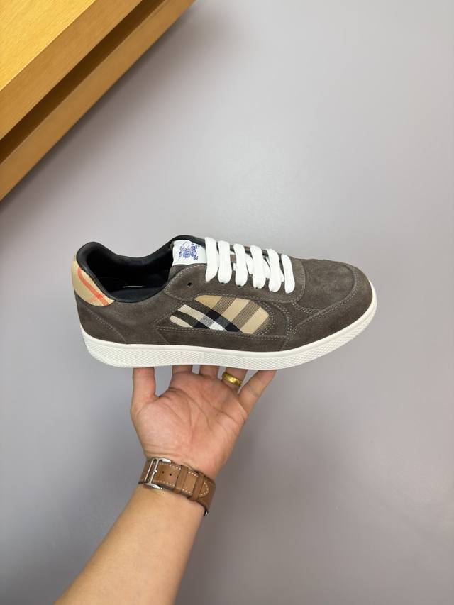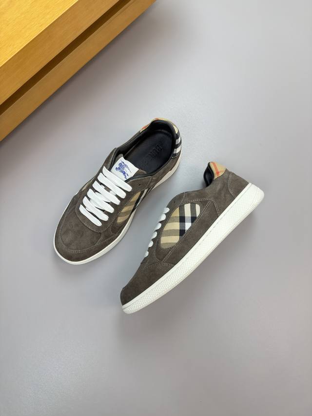 Burberry 巴宝莉 -高端品质 原单 休闲运动板鞋 -鞋面:进口反绒小牛皮、品牌图腾布匹、鞋舌.品牌布标 -内里:水染羊皮,垫脚;水染牛皮 -大底:超轻Tpr.橡胶; 双色成型大底 -超高品控 做工精细:凸显 高端 贵气 档次 -Size :39-44 38,45,可订做 Bb1100