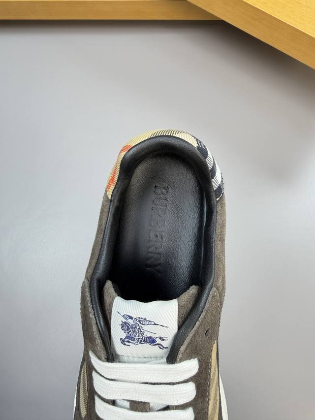 Burberry 巴宝莉 -高端品质 原单 休闲运动板鞋 -鞋面:进口反绒小牛皮、品牌图腾布匹、鞋舌.品牌布标 -内里:水染羊皮,垫脚;水染牛皮 -大底:超轻T