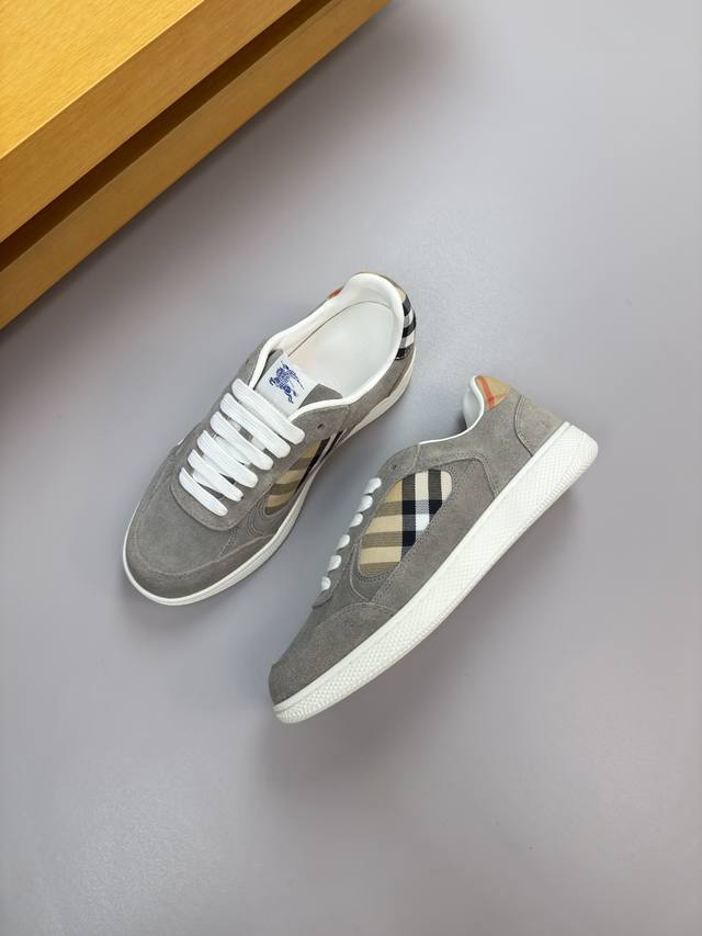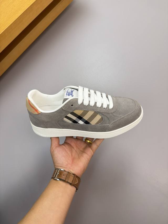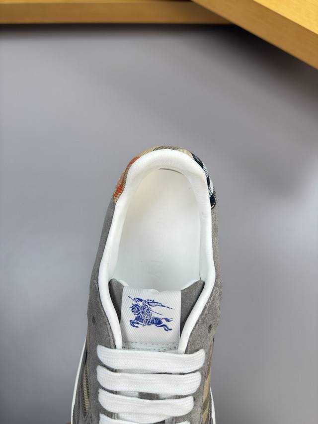 / Burberry 巴宝莉 -高端品质 原单 休闲运动板鞋 -鞋面:进口反绒小牛皮、品牌图腾布匹、鞋舌.品牌布标 -内里:水染羊皮,垫脚;水染牛皮 -大底:超轻T