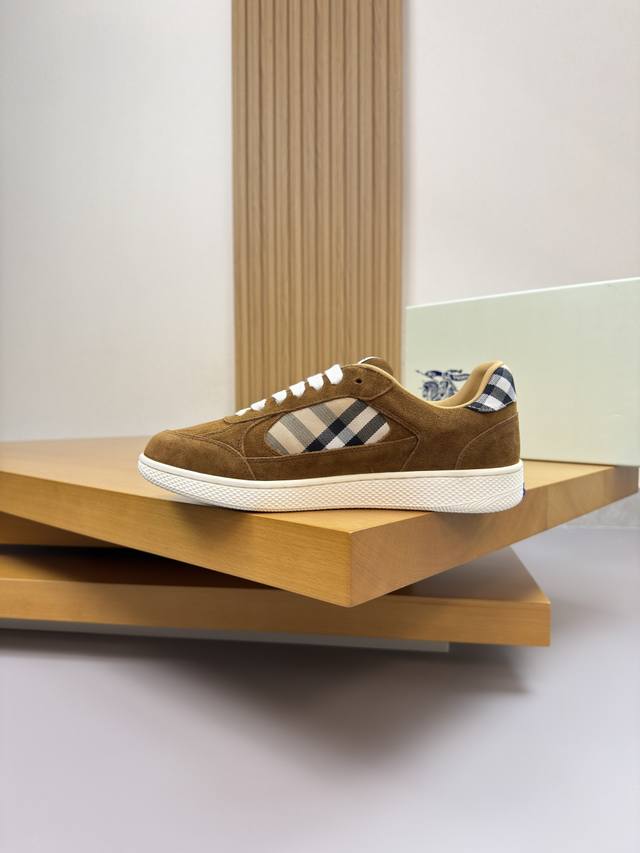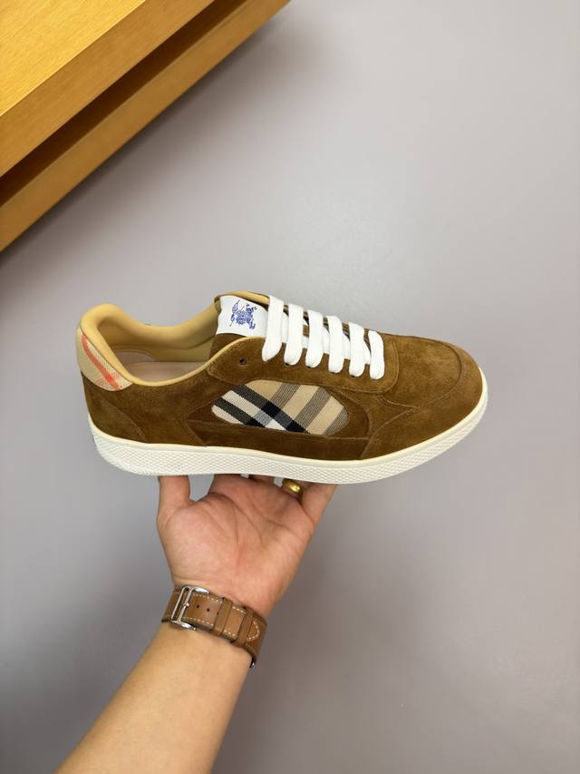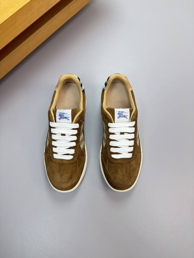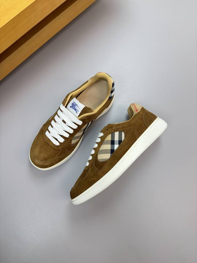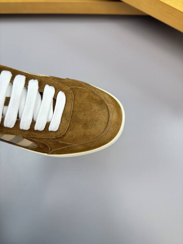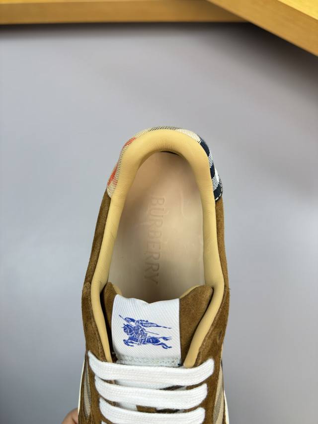 / Burberry 巴宝莉 -高端品质 原单 休闲运动板鞋 -鞋面:进口反绒小牛皮、品牌图腾布匹、鞋舌.品牌布标 -内里:水染羊皮,垫脚;水染牛皮 -大底:超轻T
