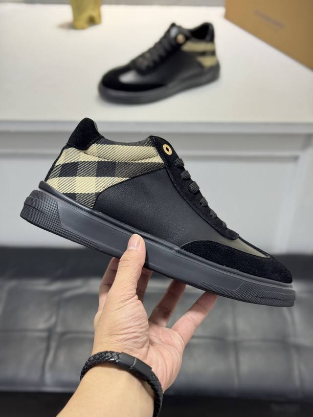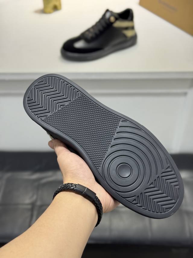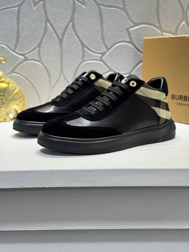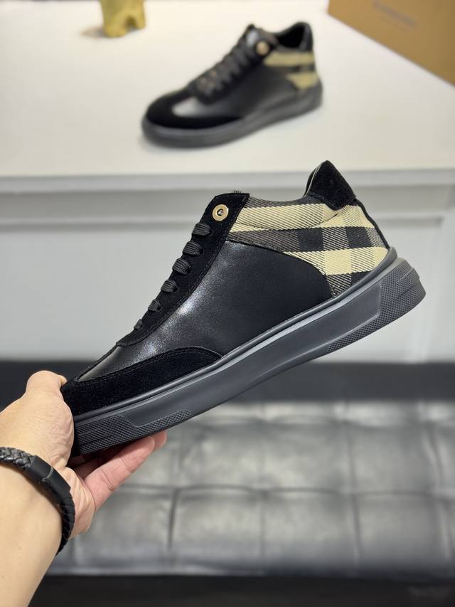 Burberry* 2025新款巴宝莉家男士经典低帮运动鞋,以 Vintage 复古格纹棉搭配牛皮材质焕新演绎,装饰焕新的品牌徽标。羊皮内里,耐磨防滑橡胶大底! DDD 实价 Size:38-44 45定制Wl DDD