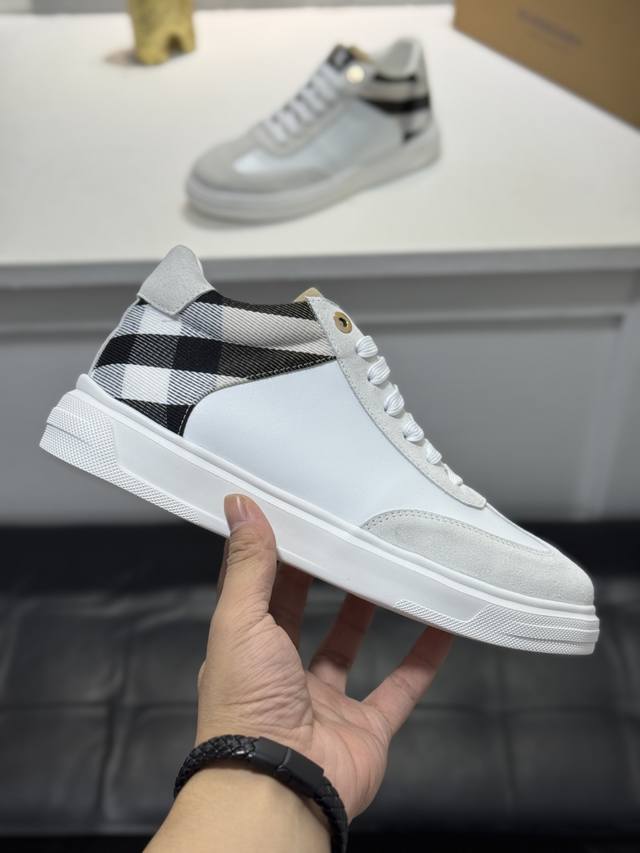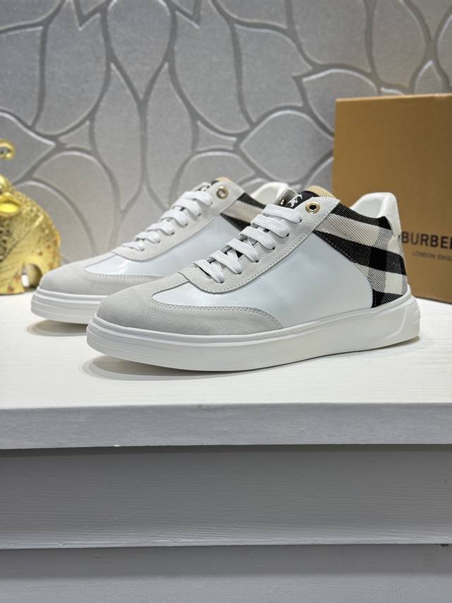 Burberry* 2025新款巴宝莉家男士经典低帮运动鞋,以 Vintage 复古格纹棉搭配牛皮材质焕新演绎,装饰焕新的品牌徽标。羊皮内里,耐磨防滑橡胶大底! DDD 实价 Size:38-44 45定制Wl DDD