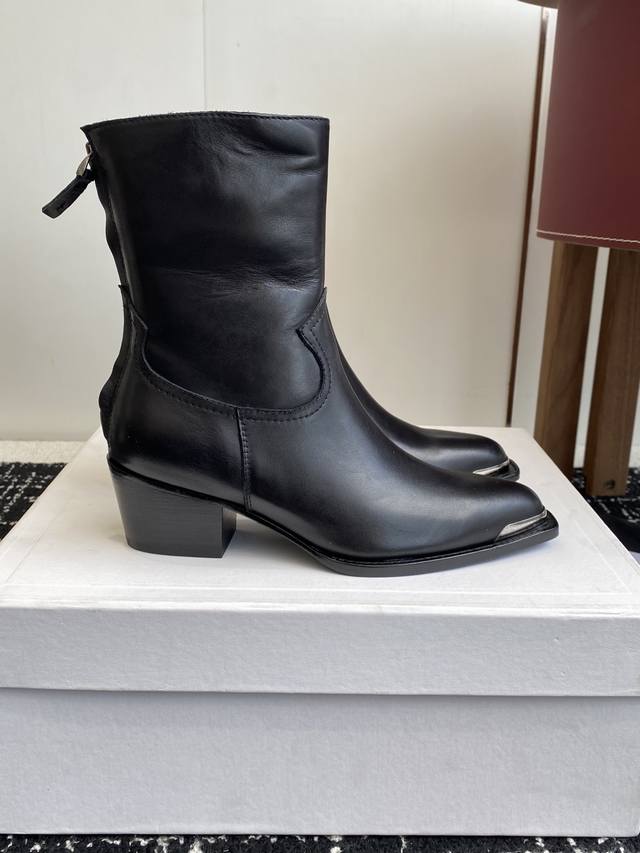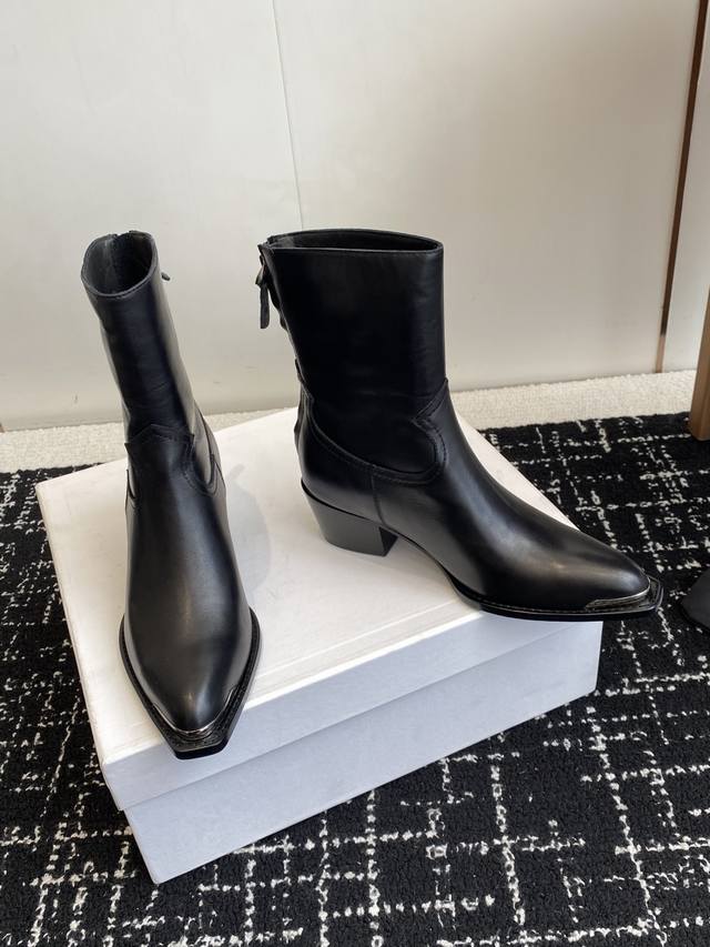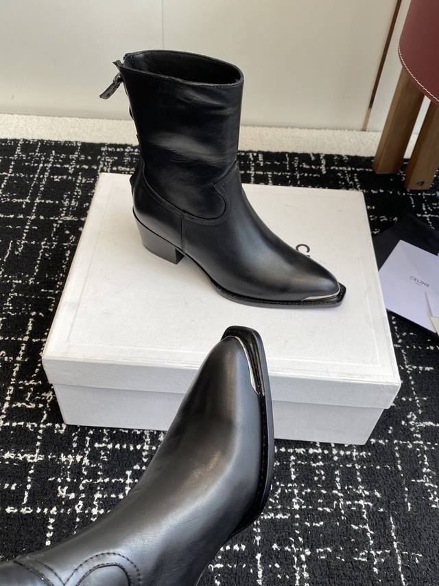 代购级牛皮 Celine 赛琳 25Ss秋冬新品 复古粗跟 切尔西 尖头 铁扣短靴 塞琳这一季好看的款式真的是很多 比如这款军靴就很机车风 重点夸夸靴筒设计 完