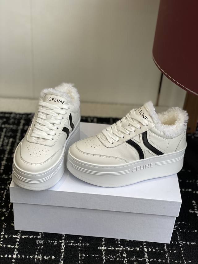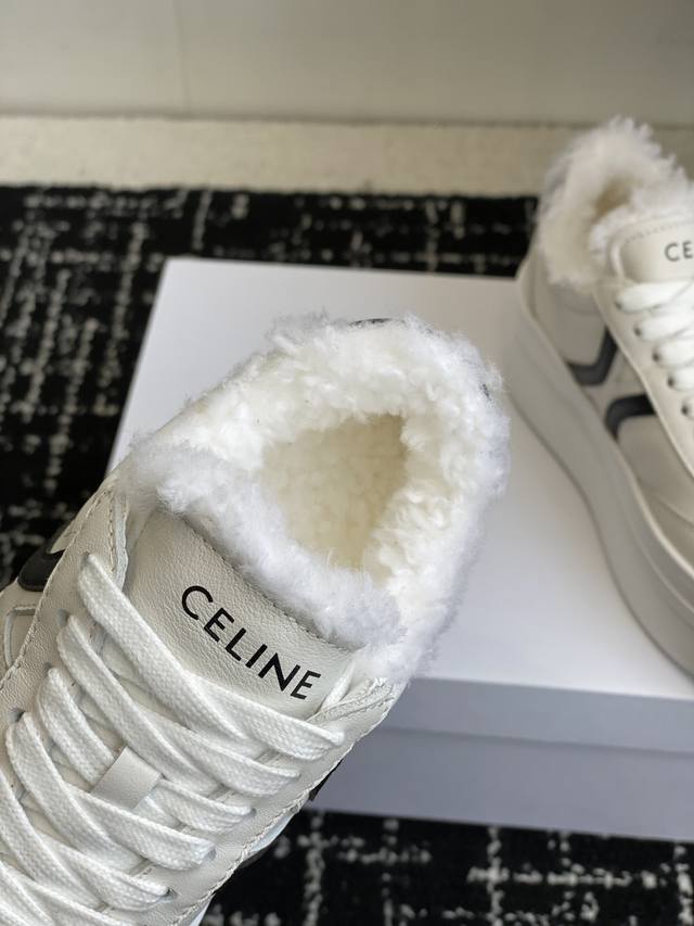 代购级 Celine思琳赛琳 羊毛 Celine Runner 动鞋鞋舌和鞋后帮饰有Celine标志运动鞋 鞋后帮和侧面压印Celine标志 厚底面包鞋2025