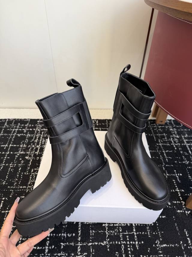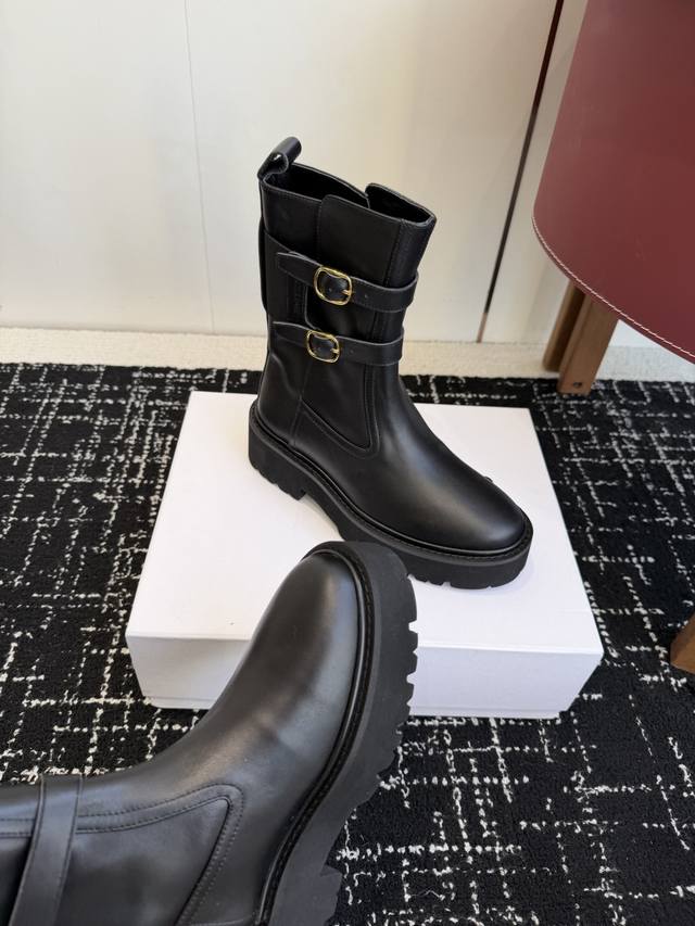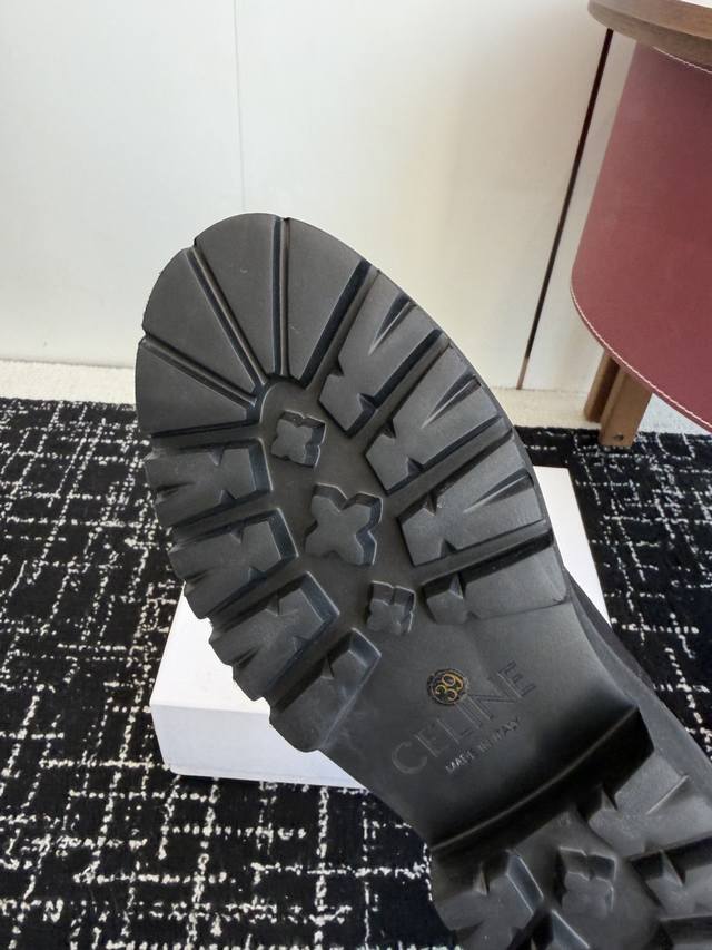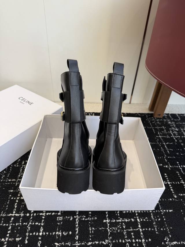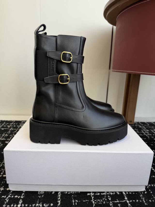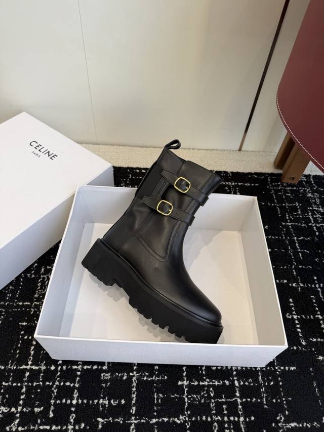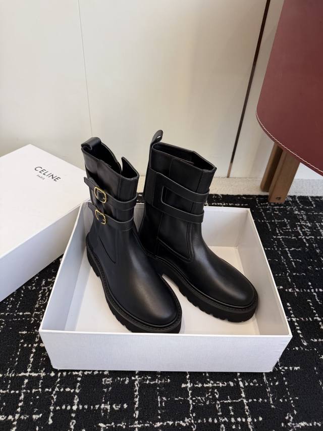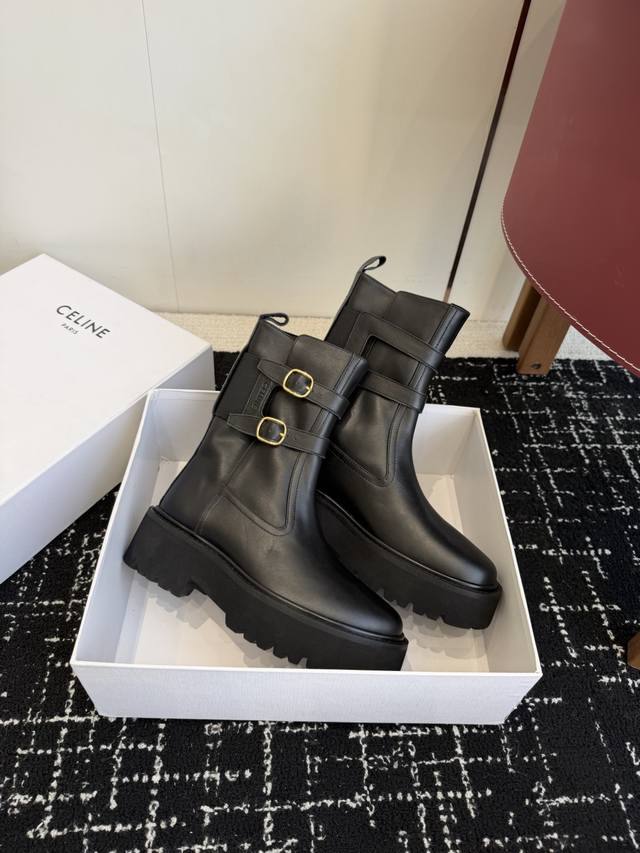 代购级牛皮 Celine 赛琳 25Ss秋冬新品 复古粗跟 切尔西 尖头 铁扣短靴 塞琳这一季好看的款式真的是很多 比如这款军靴就很机车风...