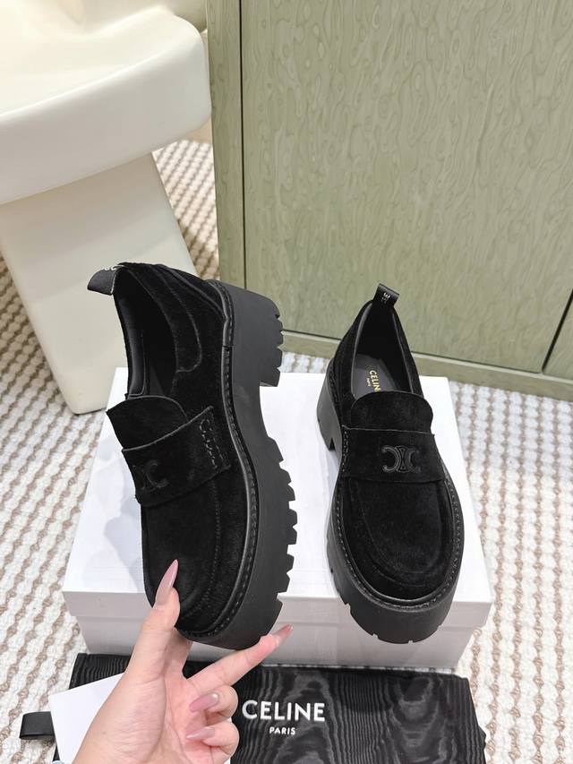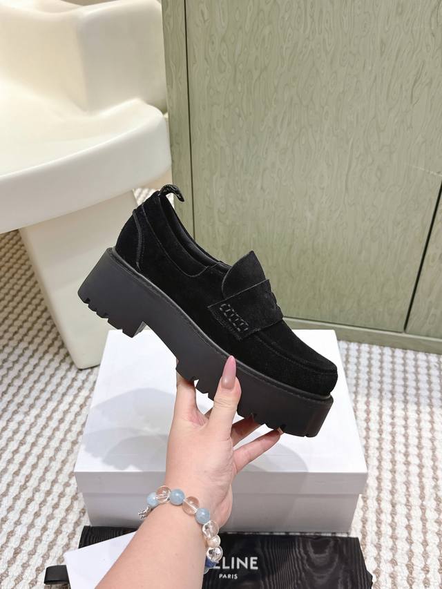 代购级 Celine 25Ss 思琳秋冬最新走秀款Lisa同款厚底乐福鞋 好多明星网红上脚 无敌显瘦 上脚超级好看百搭 进口意大利小牛皮皮质柔软 原版定制五金扣