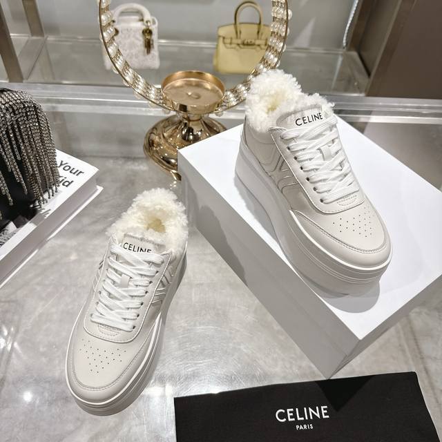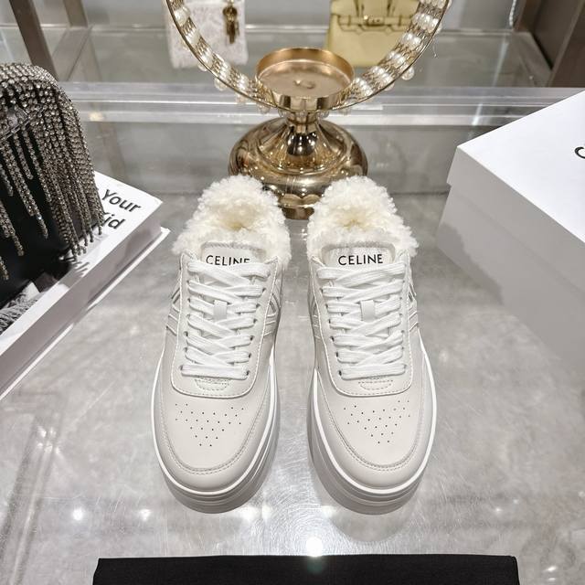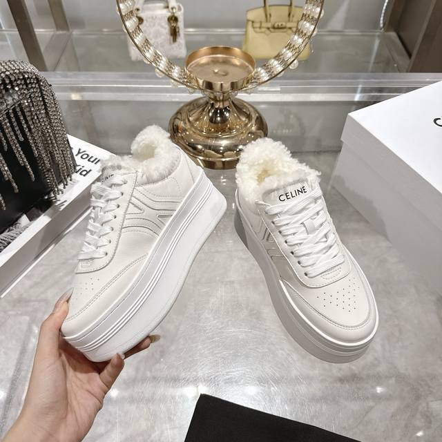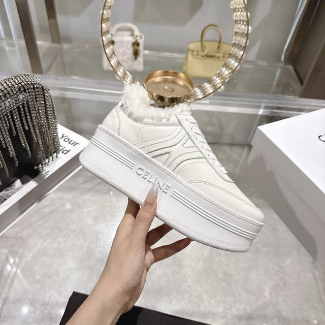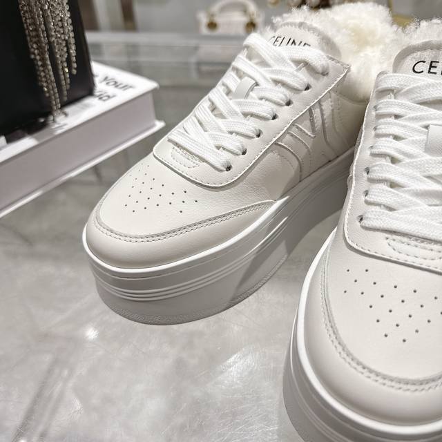 / 出厂 高版本 Celine*思琳赛琳 2025Ss新款徽标系带厚底羊毛里休闲鞋小白鞋 简单舒服,干净利落,增高显腿细,无论是单穿还是搭配阔腿裤,高街又复古一起来