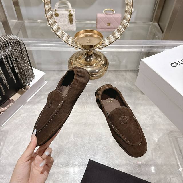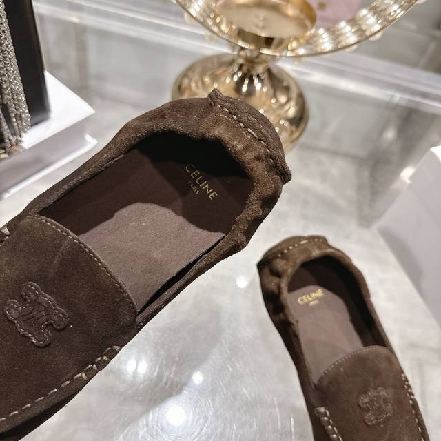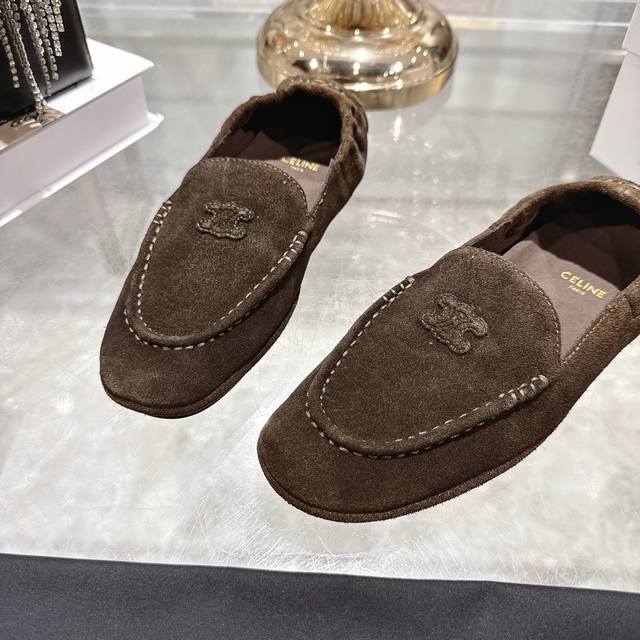 出厂 25Ss早秋新款 Celine 赛琳 Adam系列复古船鞋凯旋门乐福鞋平底豆豆鞋后松紧带单鞋 经典再现,复古凯旋门,耐磨橡胶底伴你自在前行。极简设计与精湛工艺碰撞,一脚穿出法式慵懒腔调,解锁日常高级感 日常出街的休闲装,它都能完美适配,轻松提升整体造型的质感 而且这双鞋的设计很贴合脚型,走路不累脚,春夏穿着也很透气,不会闷汗 不管你是去逛街、旅行还是运动,它都能成为你的最佳搭子 鞋面:定制高丝光牛反绒 垫脚内里:磨砂皮 鞋底:原版开模Tpu橡胶大底 码数:35-39 40定做不退换
